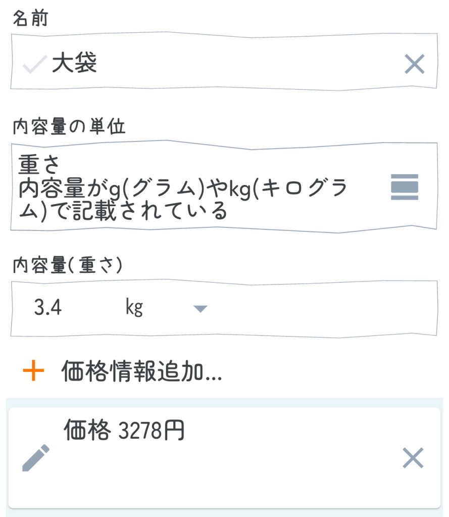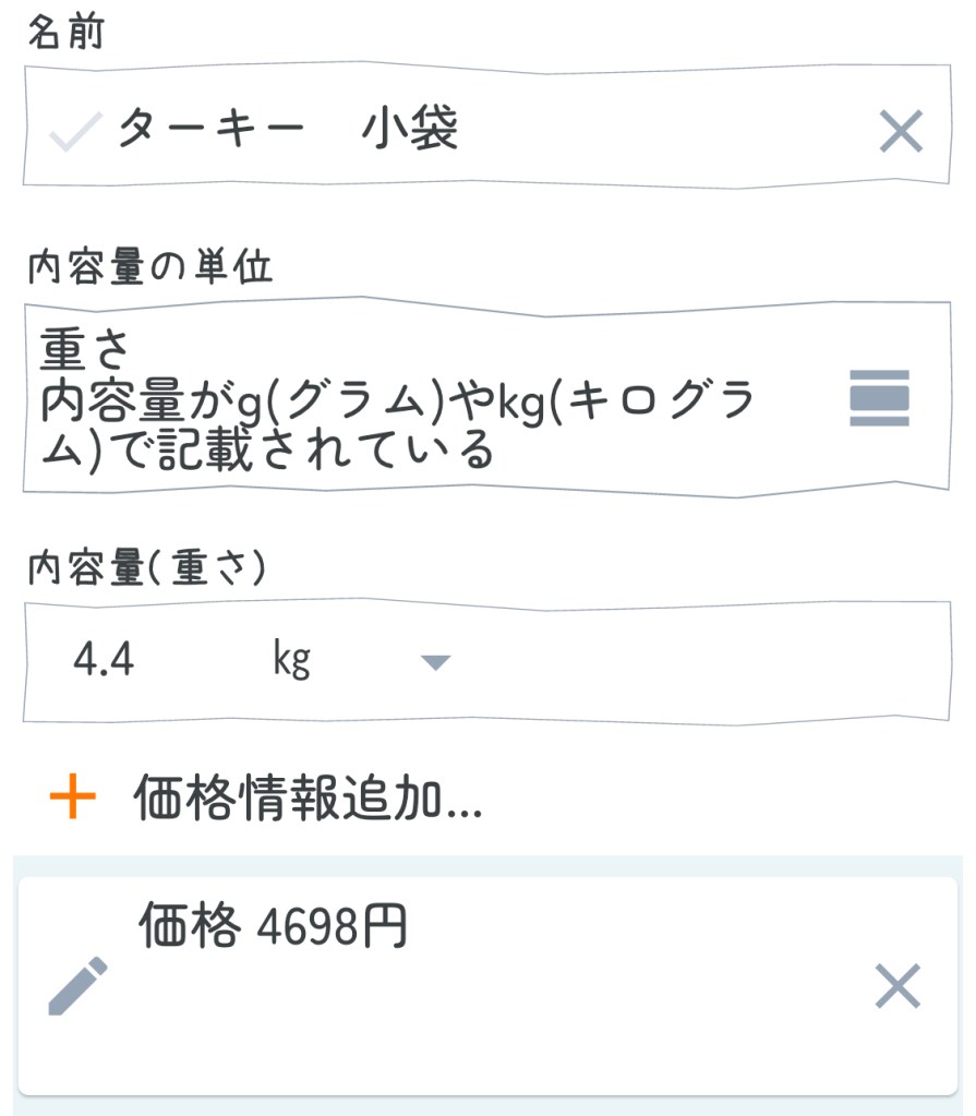 この入力データはこのままにして、次に購入するときも価格をその時のものに入れ替えて再確認しようと思います。