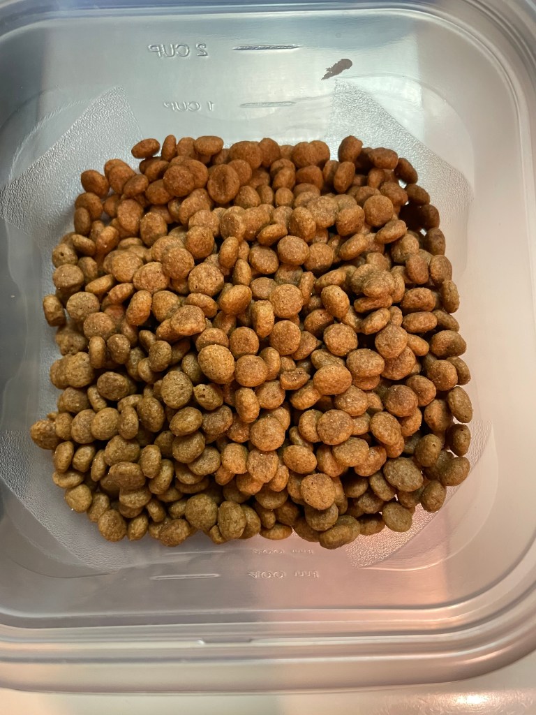 他のドライフードと3分の1から4分の1混ぜて使うので、全部消費するのに数か月かかるので酸化防止のため行っています。
