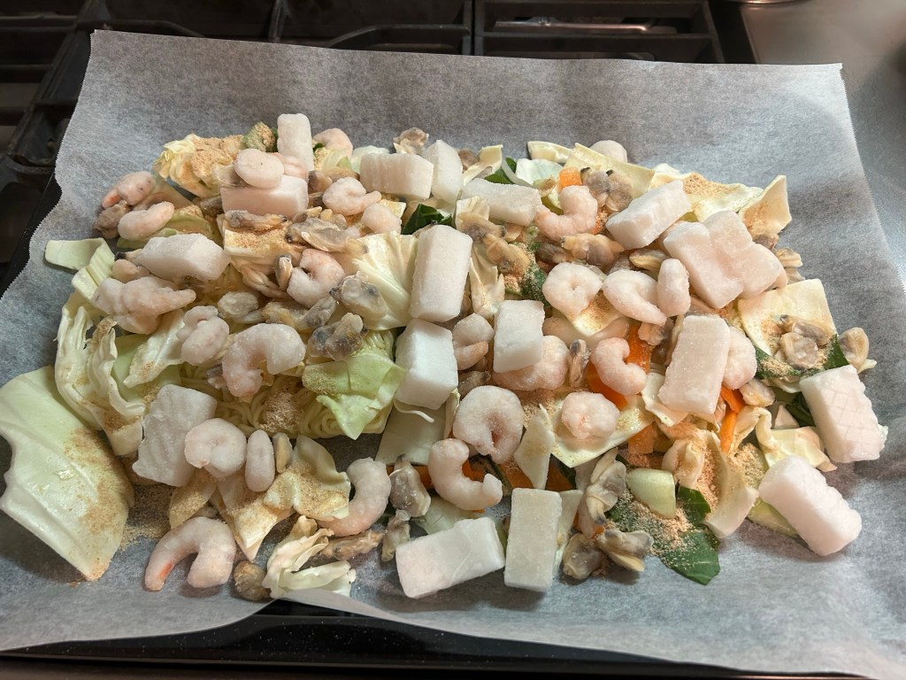 せっかくの塩味なので、シーフード焼きそばにするといいんじゃないか思い、冷凍のシーフートミックスを買ってきました。