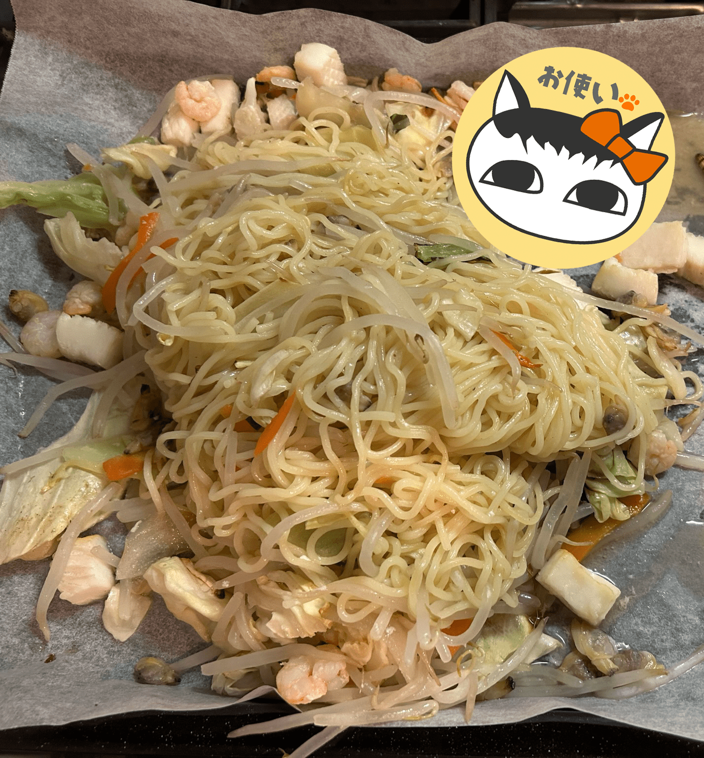スープは水に溶けているので味は薄味で、焼きそばもかなりの柔らかめな結果となってしまいました。