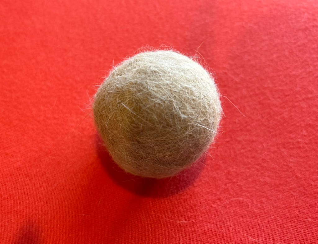 今年の抜け毛の季節から(ゴールデンウィークくらいから)ブラッシングのたびにずっと集め続けてきて、もう十分な量が出来たところで、ボールにしました。