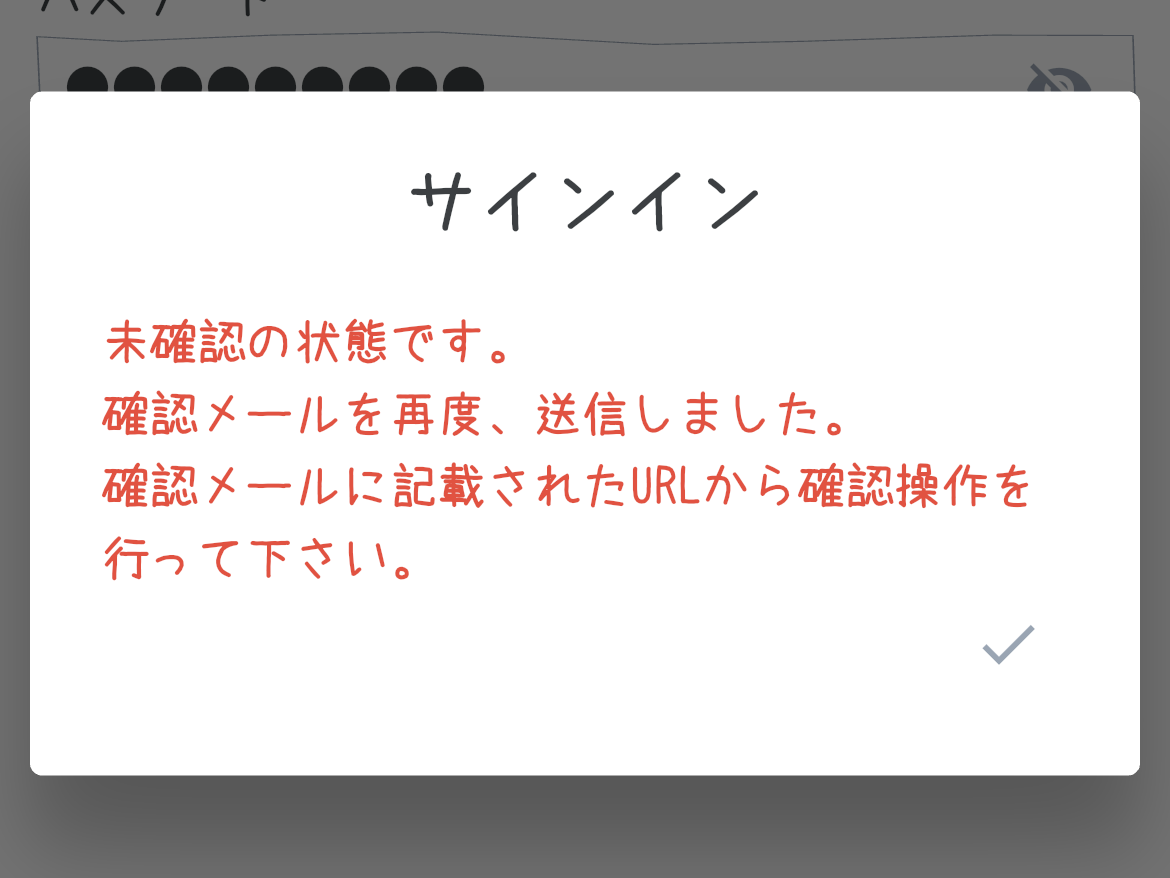 もし、「メールアドレスの確認作業」が完了していない状態でサインインを行うとエラーメッセージが表示されます。