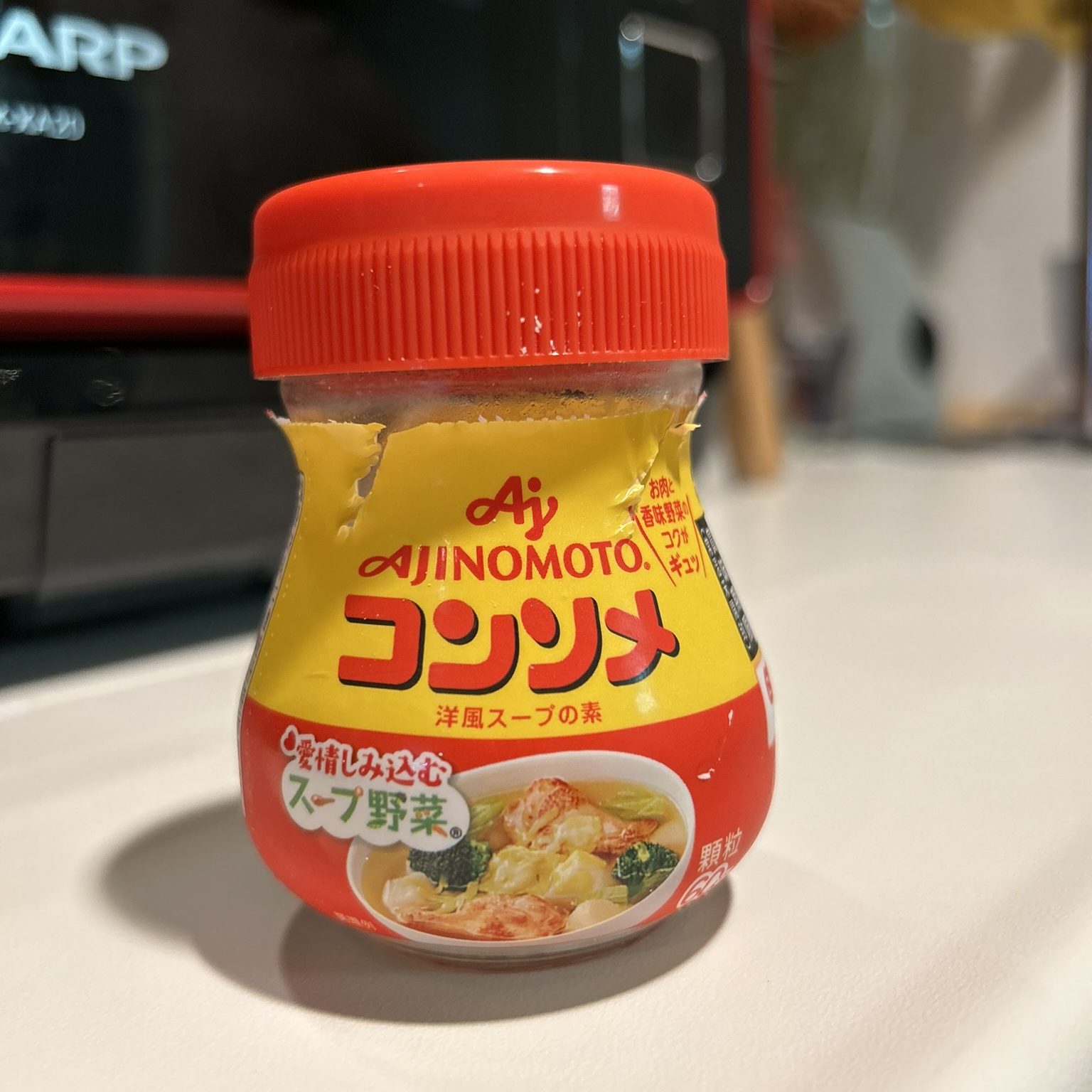 まぜ技ユニット使いのレシピである場合にはそれほど問題にならないのですが、コンソメは固形のものだとちょっと不便でした。崩さないとうまく全体に味が行き渡りません。そして固くて崩すのが大変。ちょうど、固形が無くなったのをきっかけに顆粒のものに買い換えました。
