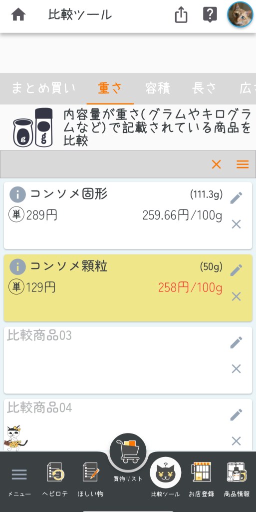 顆粒のコンソメの瓶がとても小さい感じがしたので、価格を確認することにしました。