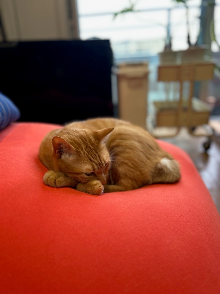 ごはんやげろの状態ですが、ごはんはいつも通り完食しています。ごはんを食べてくれない猫ちゃんもいるので、元気にカリカリを食べてくれてありがたいです。