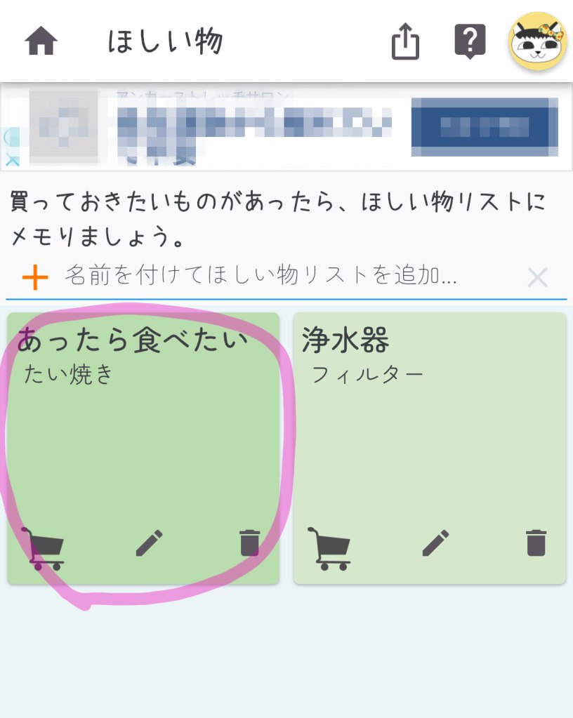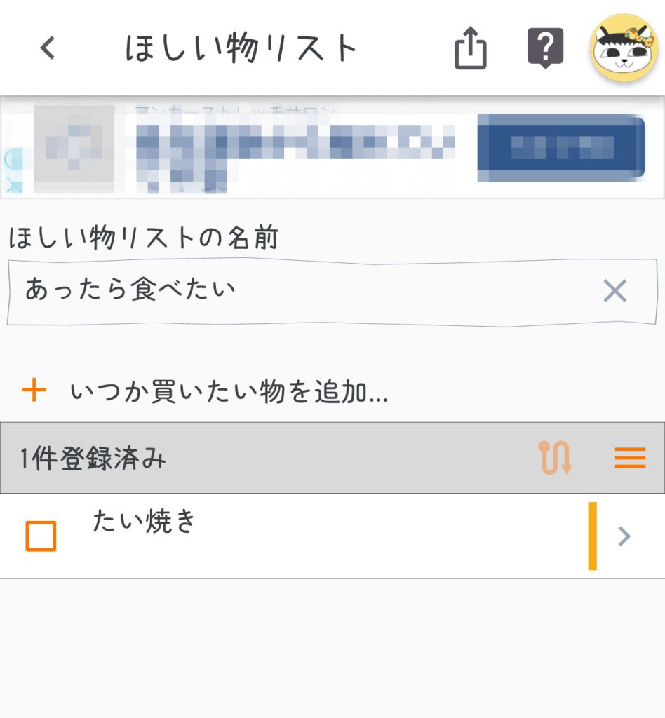 「あったら食べたい」のリストを作って、たい焼きを追加しました。