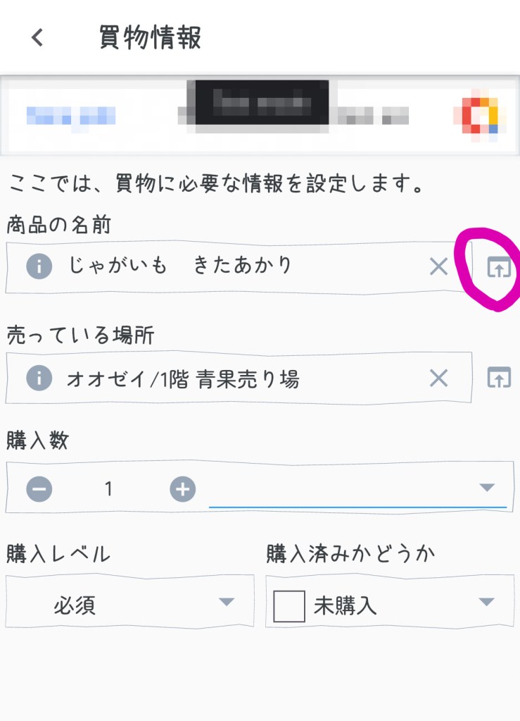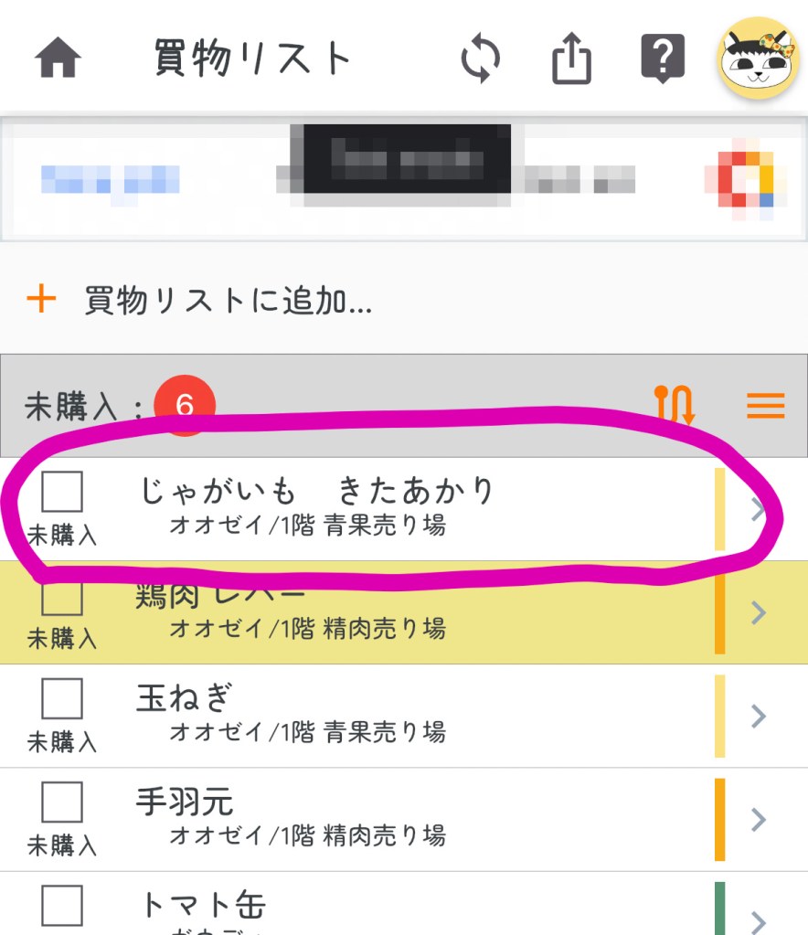 じゃがいもの種類も買い物の時に指定していきたいときは、左のように買い物のリストのアイテムにその種類も入れちゃいましょう。お使いを頼まれた人が「きたあかりって、何のこと?」と思うかもしれません。