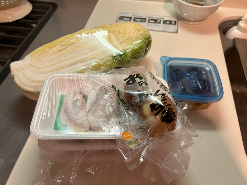 材料は参考レシピとは全く同じではなく、手羽先とショウガ、調味料以外は家にあったものや当日スーパーで広告の品となっていたものにしました。