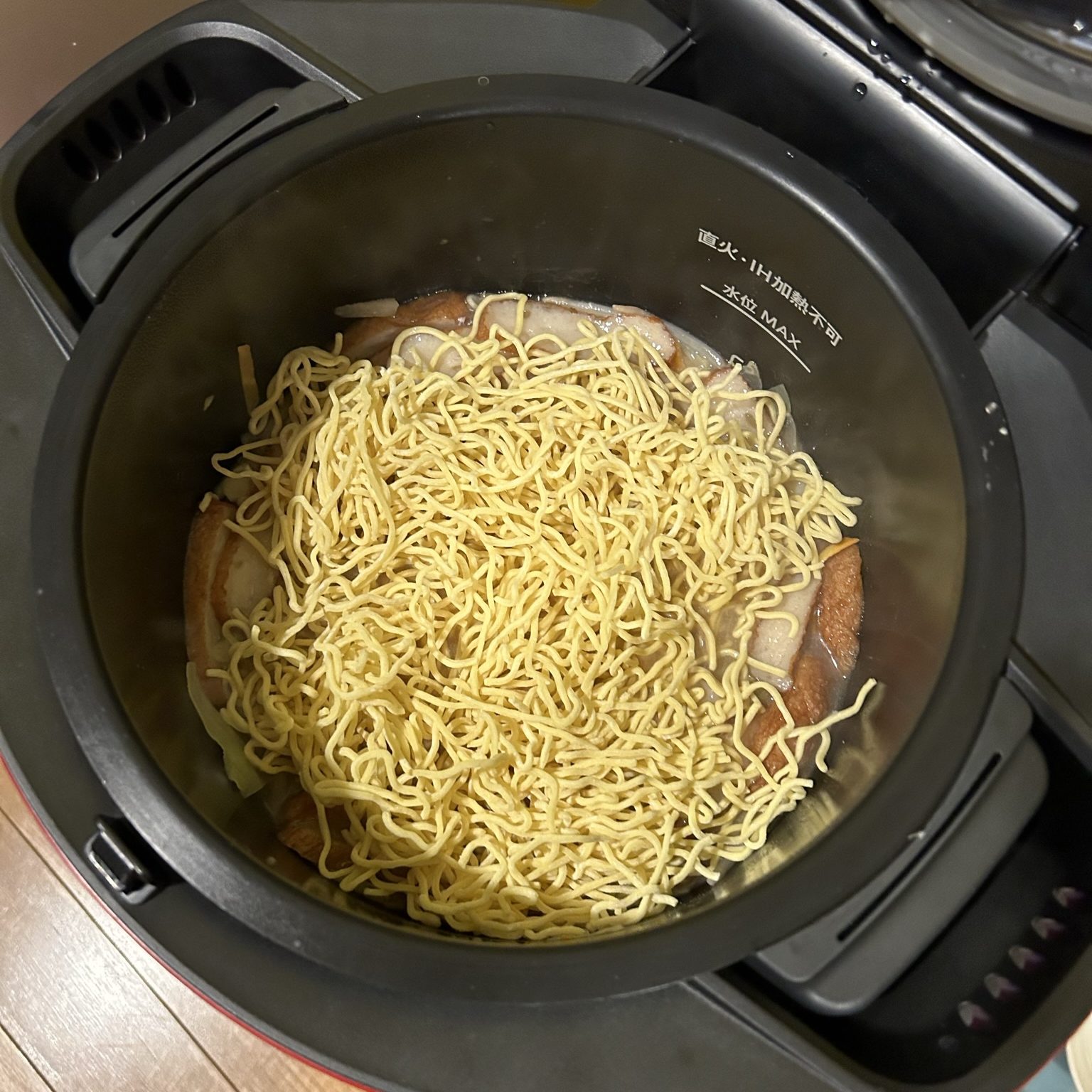 レシピは原則ホットクックのレシピブックを参考にしました。麺料理なので、ホットクックならではのところもあるので、基本はそれに従って作らないといけないと思いました。