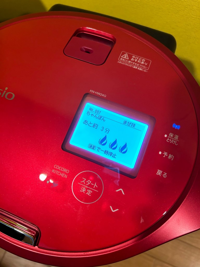麺は、ホットクックの調理中に入れるんだそうです。そしてそのタイミングもホットクックが教えてくれます。