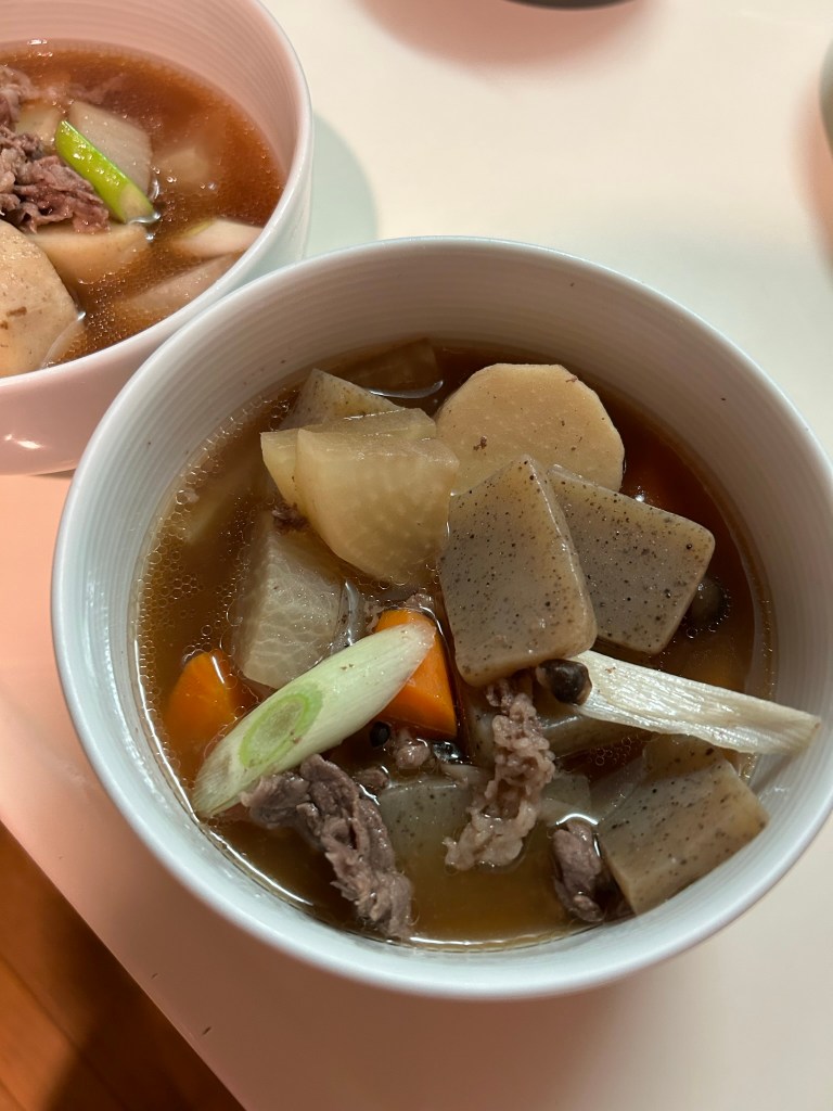 ホットクックは汁物が得意なので、山形の芋煮を作ってみました。付属のレシピブックには芋煮がなかったので、今回はクックパッドのレシピでつくりました。