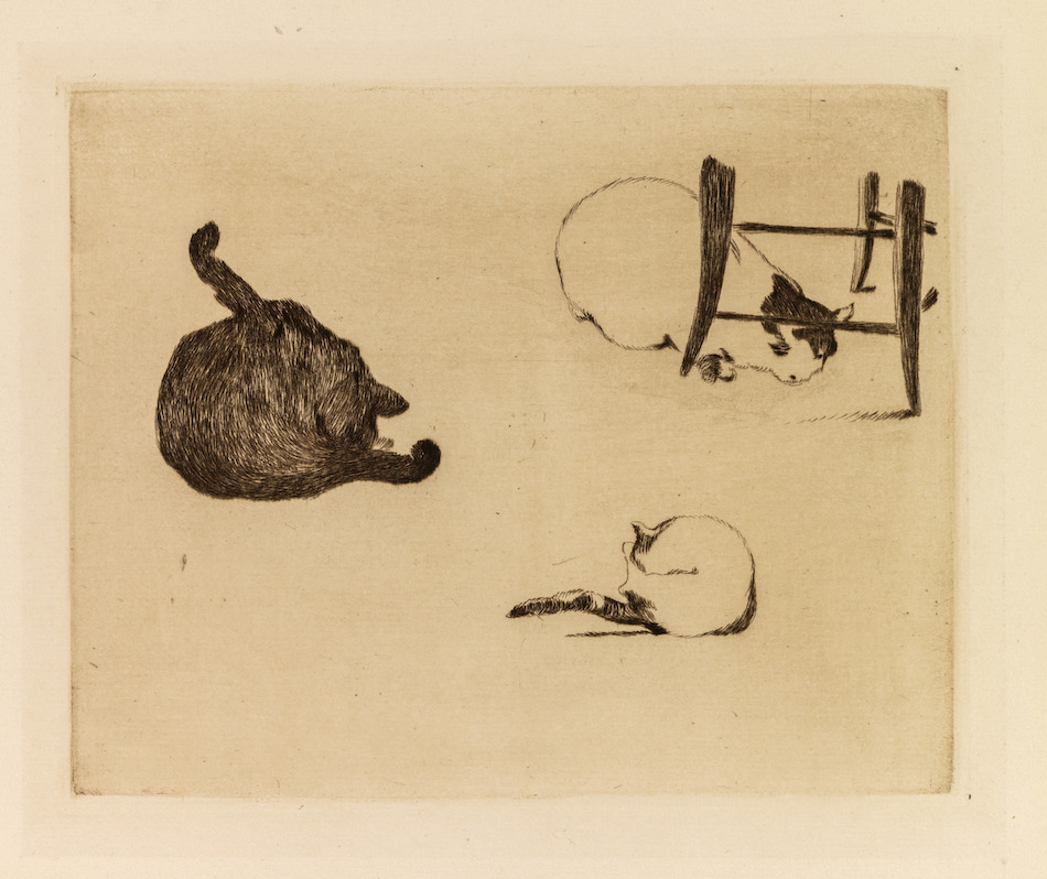 東京富士美術館に所蔵されているマネのエッチング「猫」はまさに足ぴーんのポーズです。