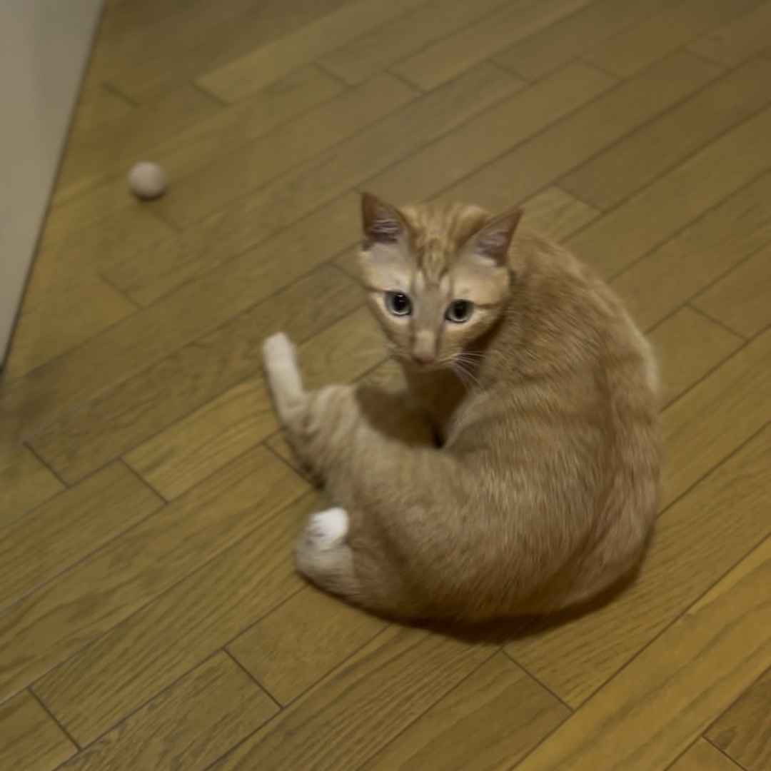 猫ちゃんって、毛づくろするときなどで足をぴーんしますよね。トラきちも毛づくろいの時や自分の足が気になってじゃれてしまう時にそのポーズをします。これは自分の足が気になってしまったところ。。後ほど、ふと我に返りました。