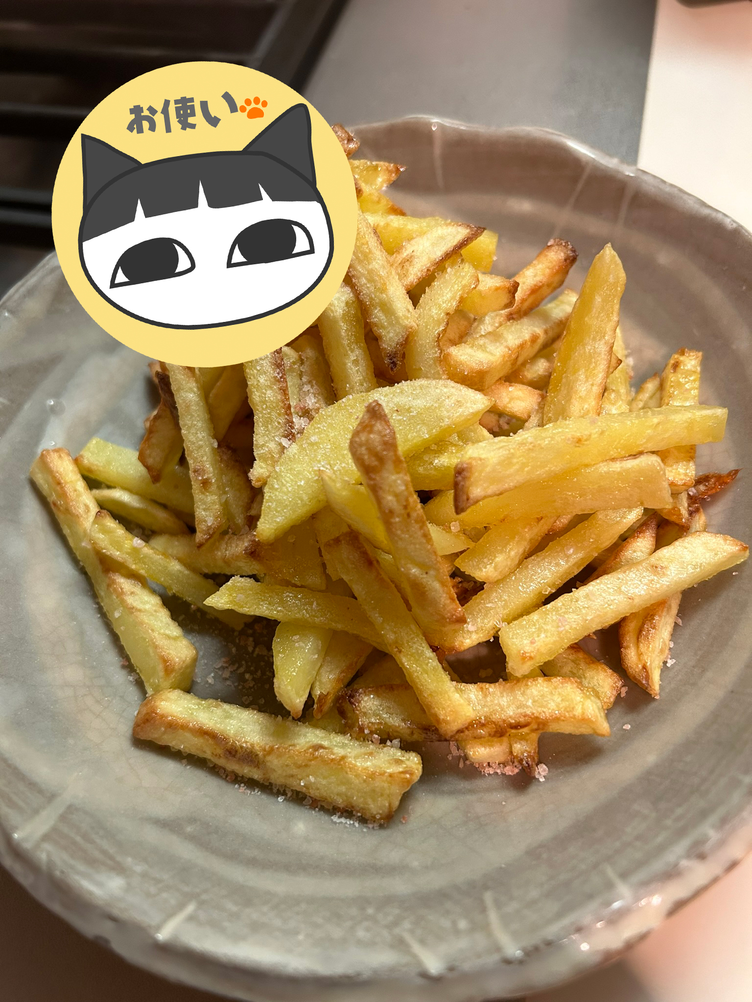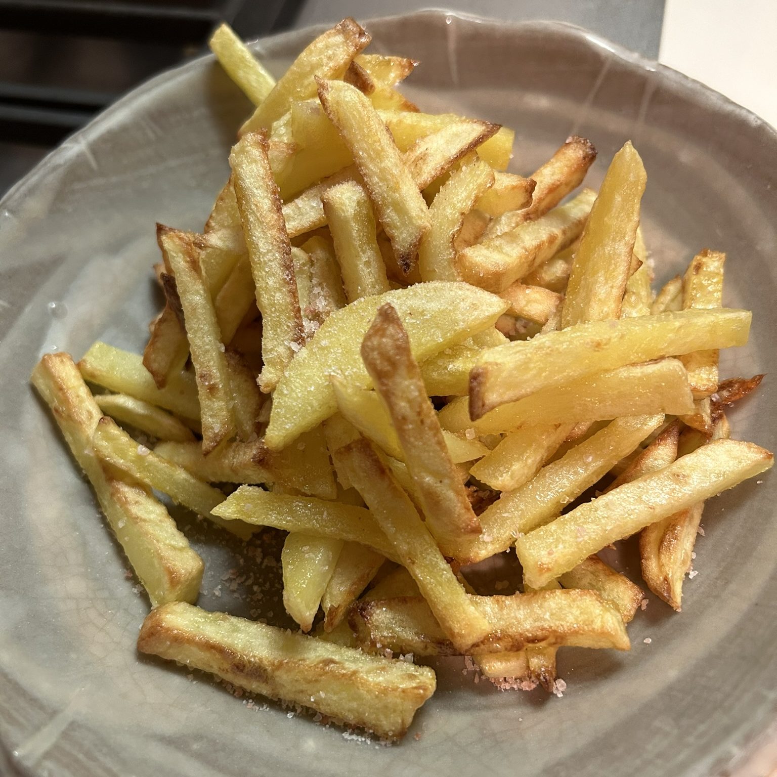 じゃがいもはなんでも美味しいと思いますが、今回はきたあかりを使ってみました。カレーやシチューなどにいれると溶けてしまうくらいの柔らかい品種ですが、フライドポテトにすると、外はカリッ、中は柔らかく仕上がりました。