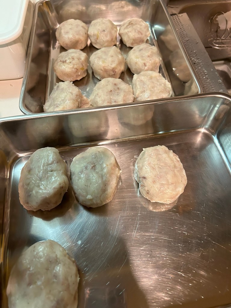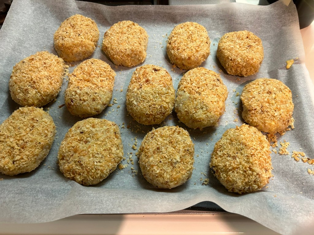 まず、ホットクックで作ったコロッケの具は熱々なので冷まさなくてはなりません。具だけは早めにやっておくべきでした!具は冷めると少し硬くなって丸めやすくなりました。