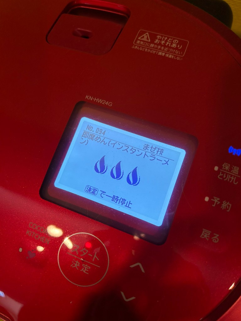 ホットクックのメニューにインスタントラーメンがあることを知らなかったのですが、メニュー番号選択で出来るんですね。