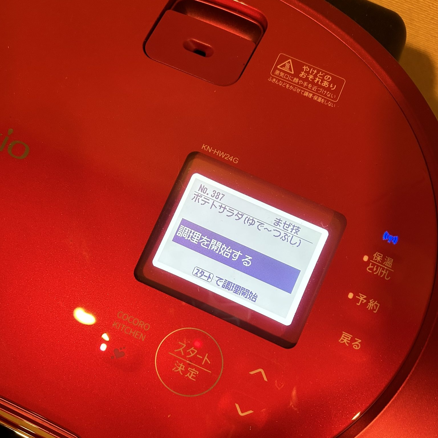 ホットクックでの調理が完了すると、ゆでつぶされたじゃがいもの出来上がりです。水が多いとクリーミイすぎることもあり、そんな時は、「煮詰める」機能を使って水分を飛ばします。