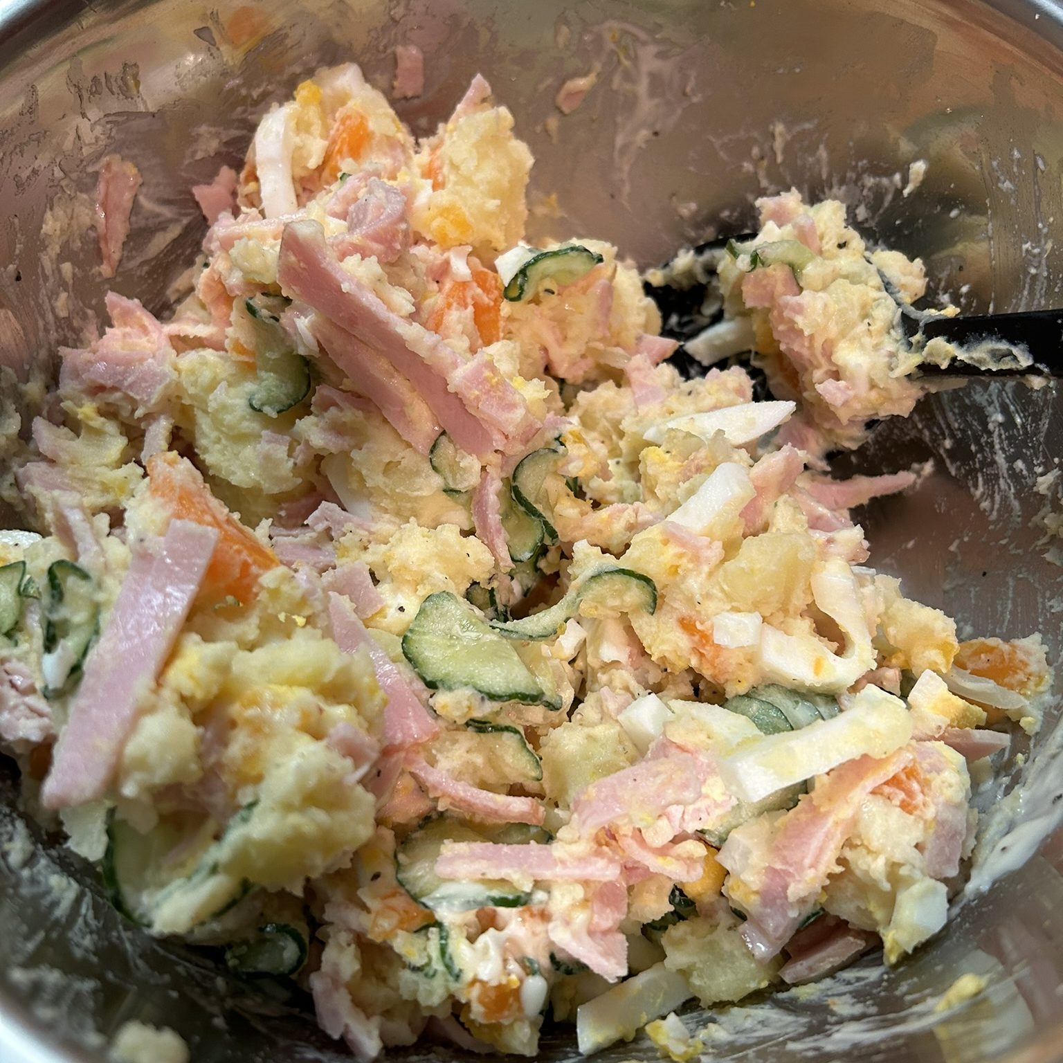後入れの材料は、いろいろ工夫のできるポテトサラダなので、その時にお家にあったものやスーパーに行って安かったものなどをいれてバリエーションを持たせると飽きないし楽しいですよね。