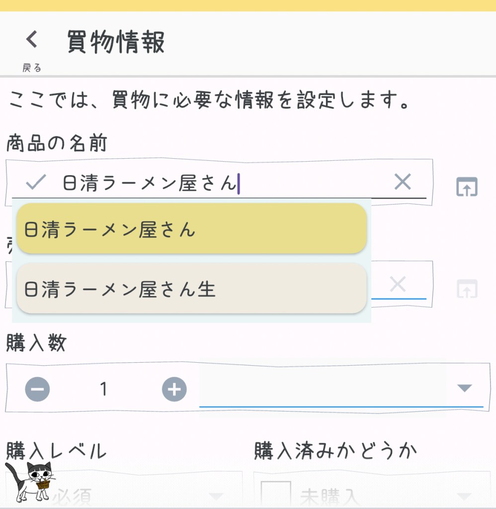 入力した商品名からも検索ができるので、お使いに行く人に予め見てもらってもいいですね。