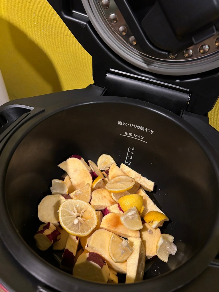たどり着いたのが「さつまいもとりんごのレモン煮」でした。通常のメニューにはないので、ダウンロードしました。