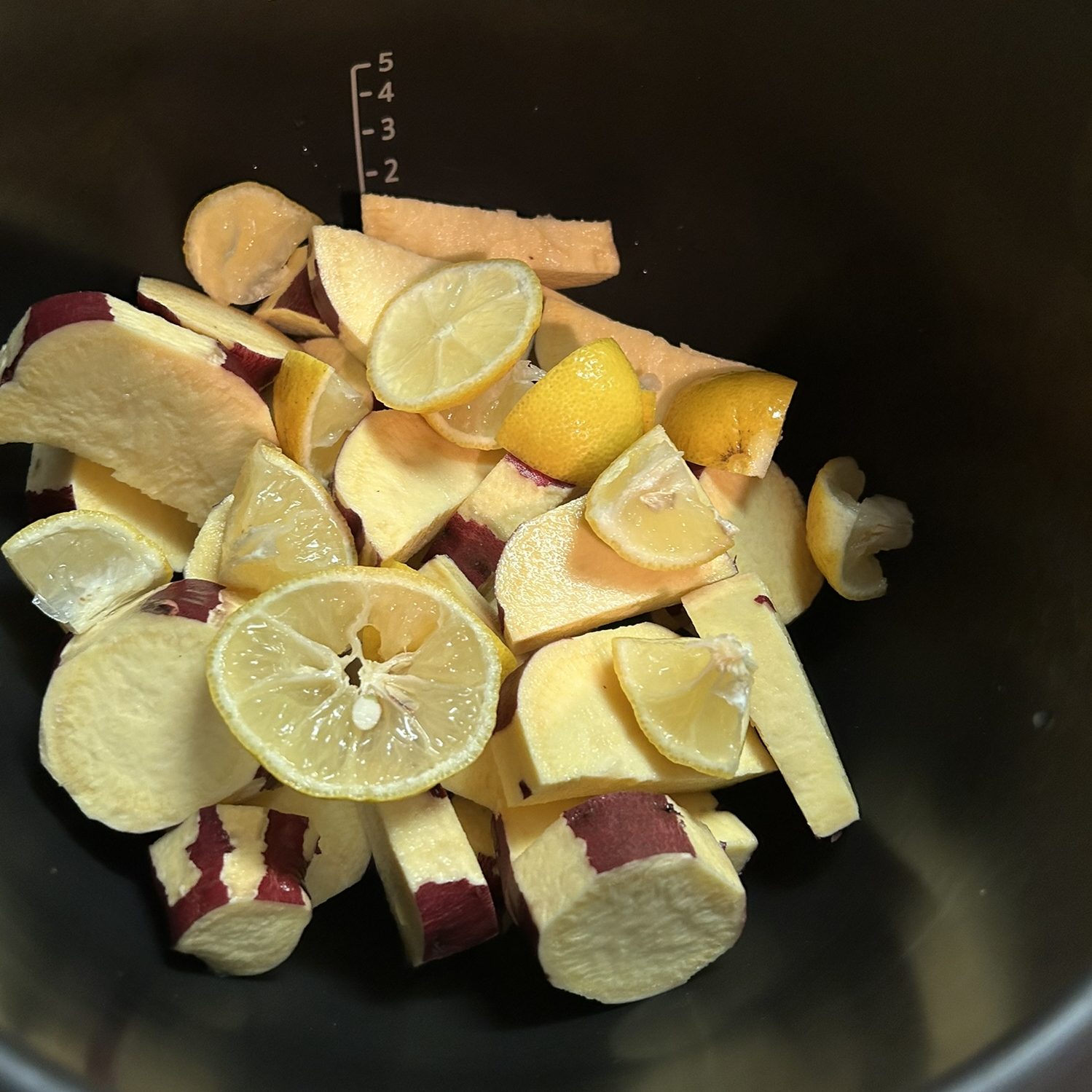 材料は、さつまいもと柚子と調味料。。レシピは、調味料の配分にとっても参考になります。