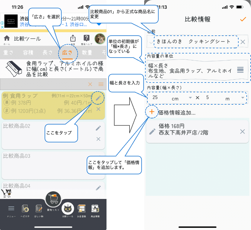 後は価格情報の入力ですが、最低限の情報として価格の入力が必要です。「売っている場所」や「有効期間」は入力しなくても比較は出来ます。