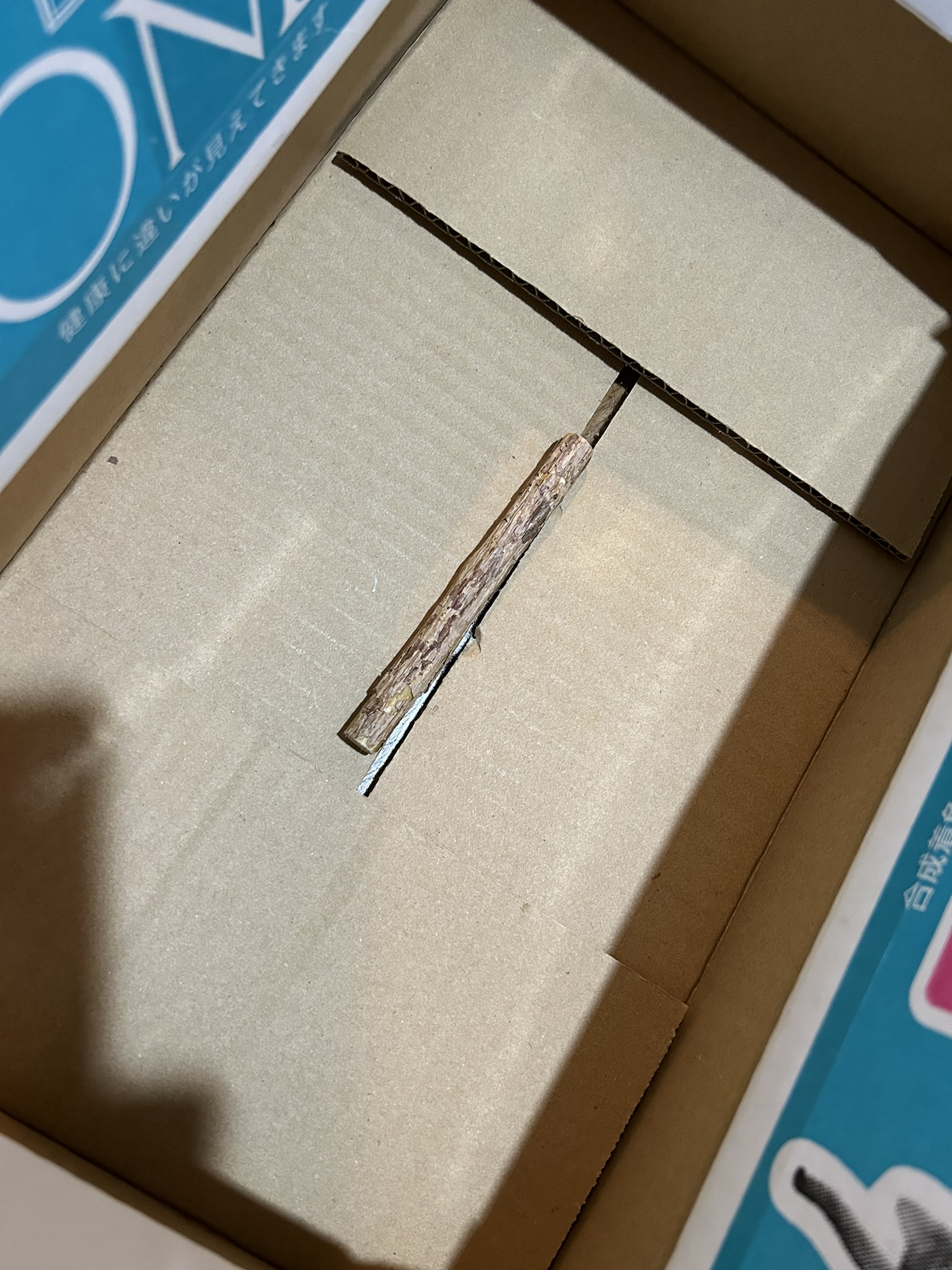 トラきちの噛み跡はかなり強く残っています。噛むのは段ボールだけにしてね。