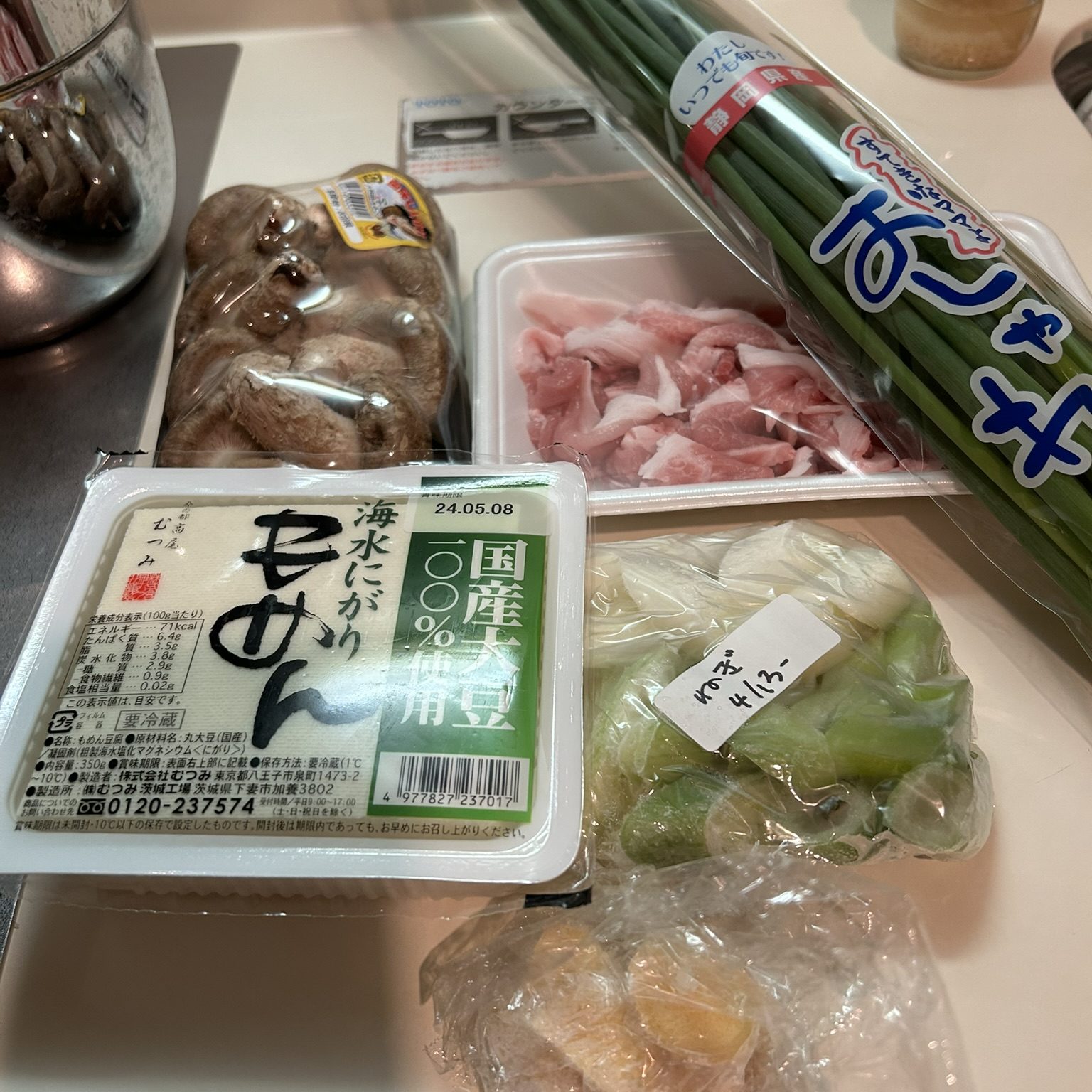 材料は、椎茸と豚肉以外に、冷凍庫にあったネギやショウガ、豆腐もいれます。