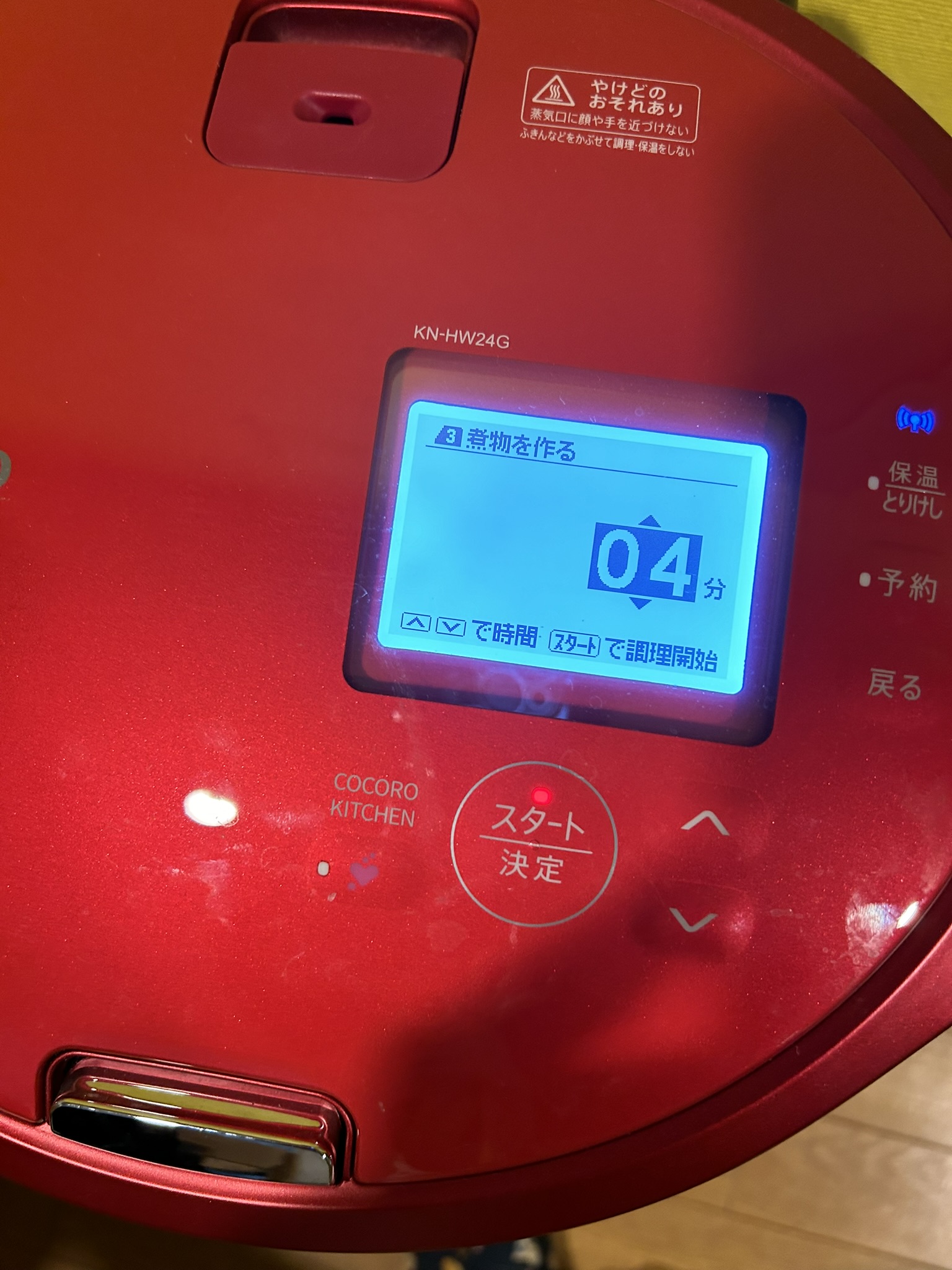 もっとクックをホットクックに取り付けて、ホットクックメニューは手動で選択し、「手動で作る」→「炒める」→「5分」とします。