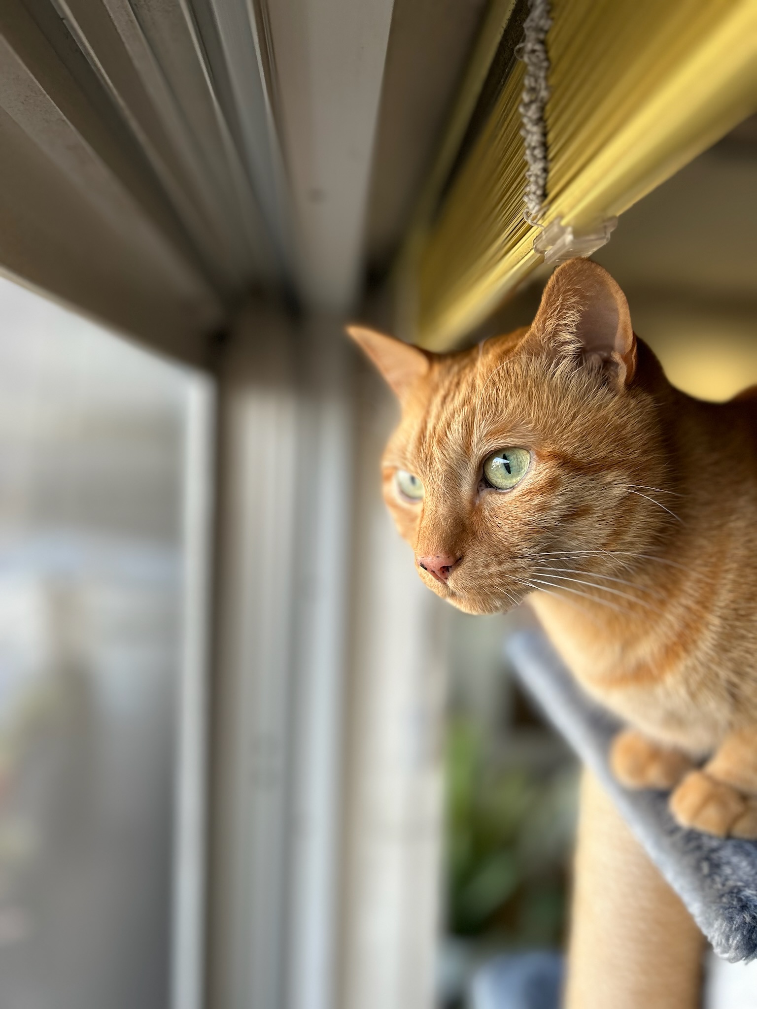 うちのトラきちも例外なく、外を眺めるのが大好きです。特に朝の空気の入れ替えでガラス戸を開けると、窓越しににあるキャットタワーから網戸越しにニャルソックを始めます。