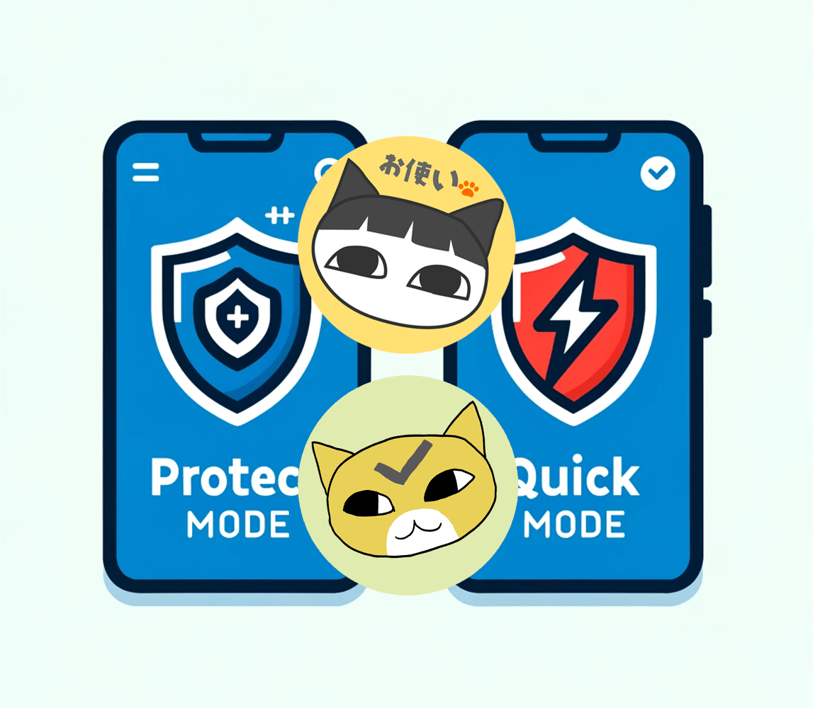 お使いブギーでは、「買物リスト」、「ヘビロテ」、「ほしい物」など目的別にメニュー項目を提供していましたが、おてがるキャットでは、4つの動作モードを操作目的に合わせて切り替えて利用します。