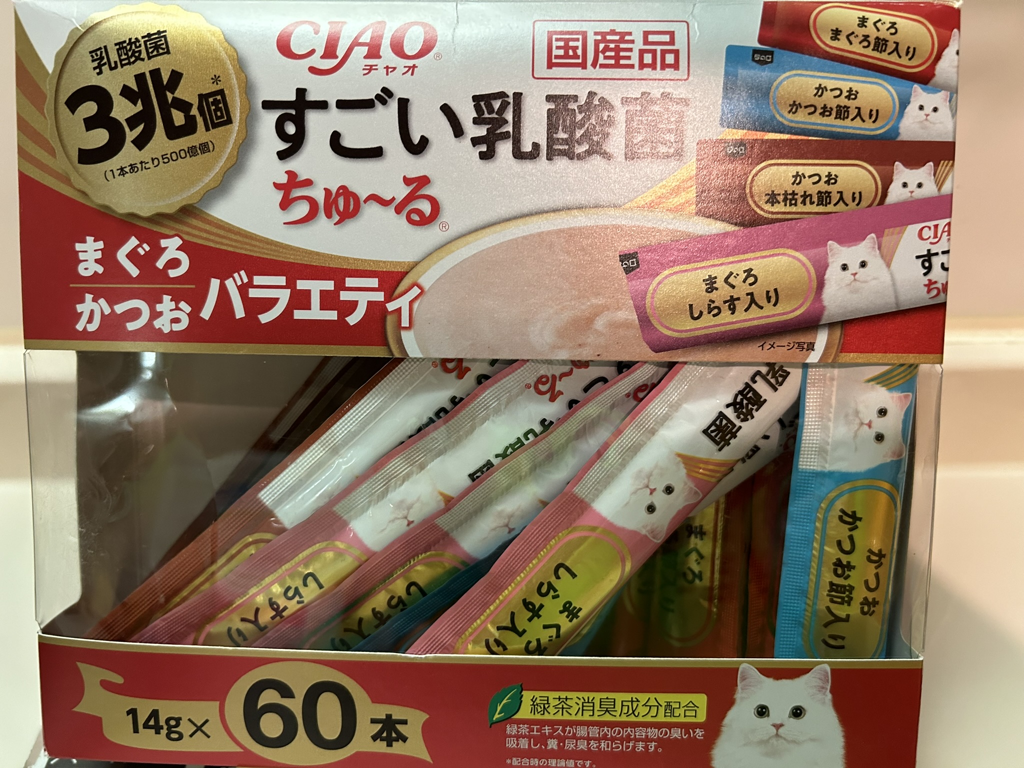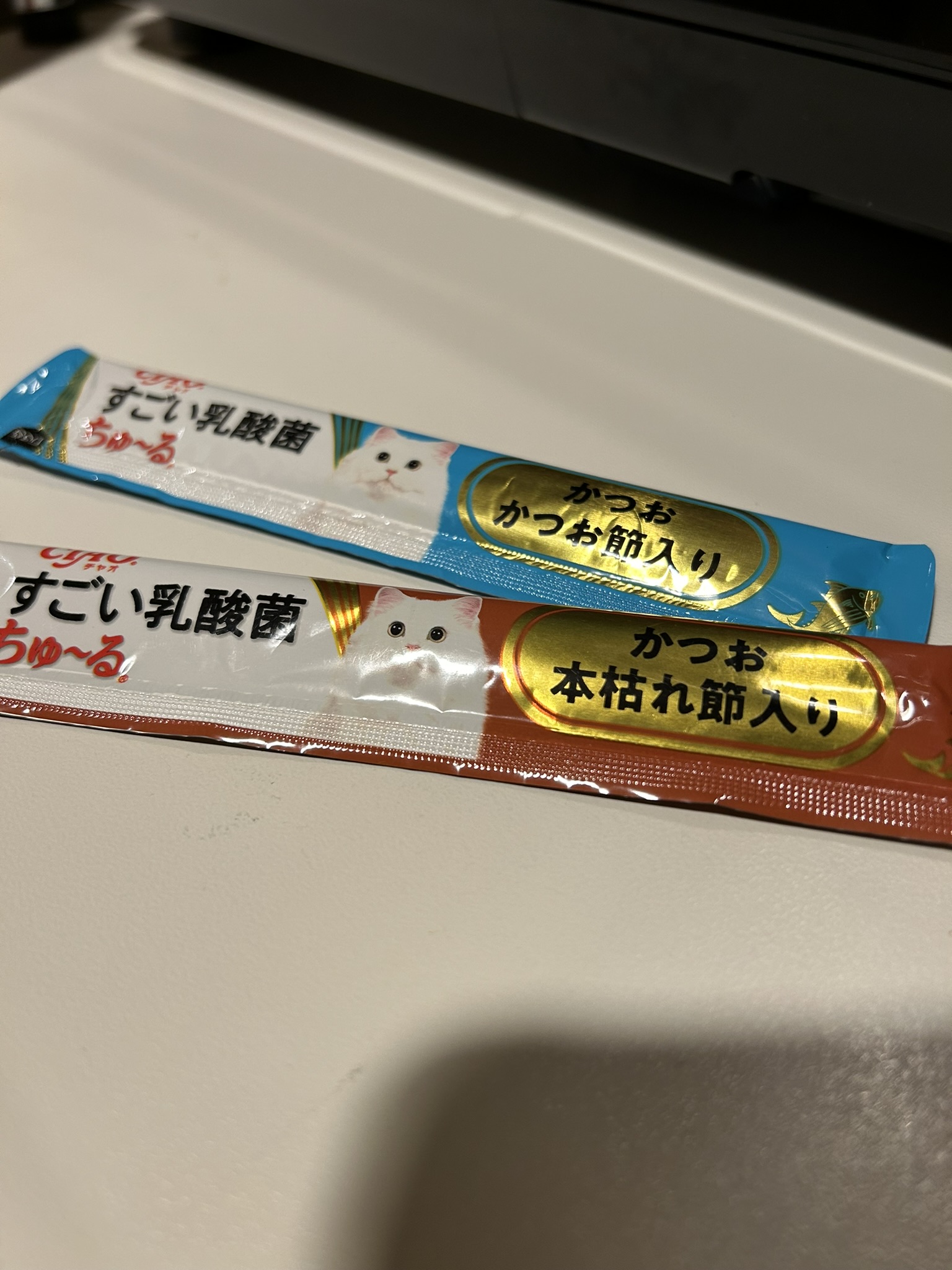 「ちゅーる」は、毎晩のお夜食です。冷房の効きをよくするために部屋の引き戸を閉めているのですが、時間になるとそれを頭で押して開けて入ってくるほど楽しみにしています。