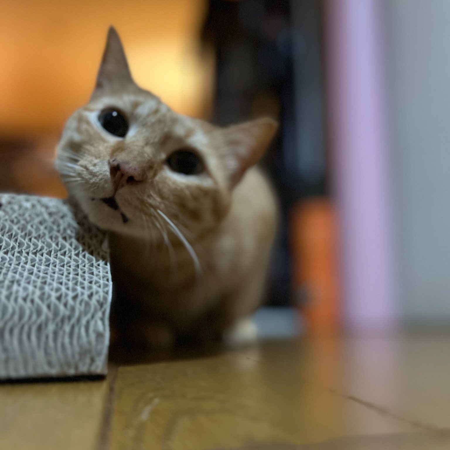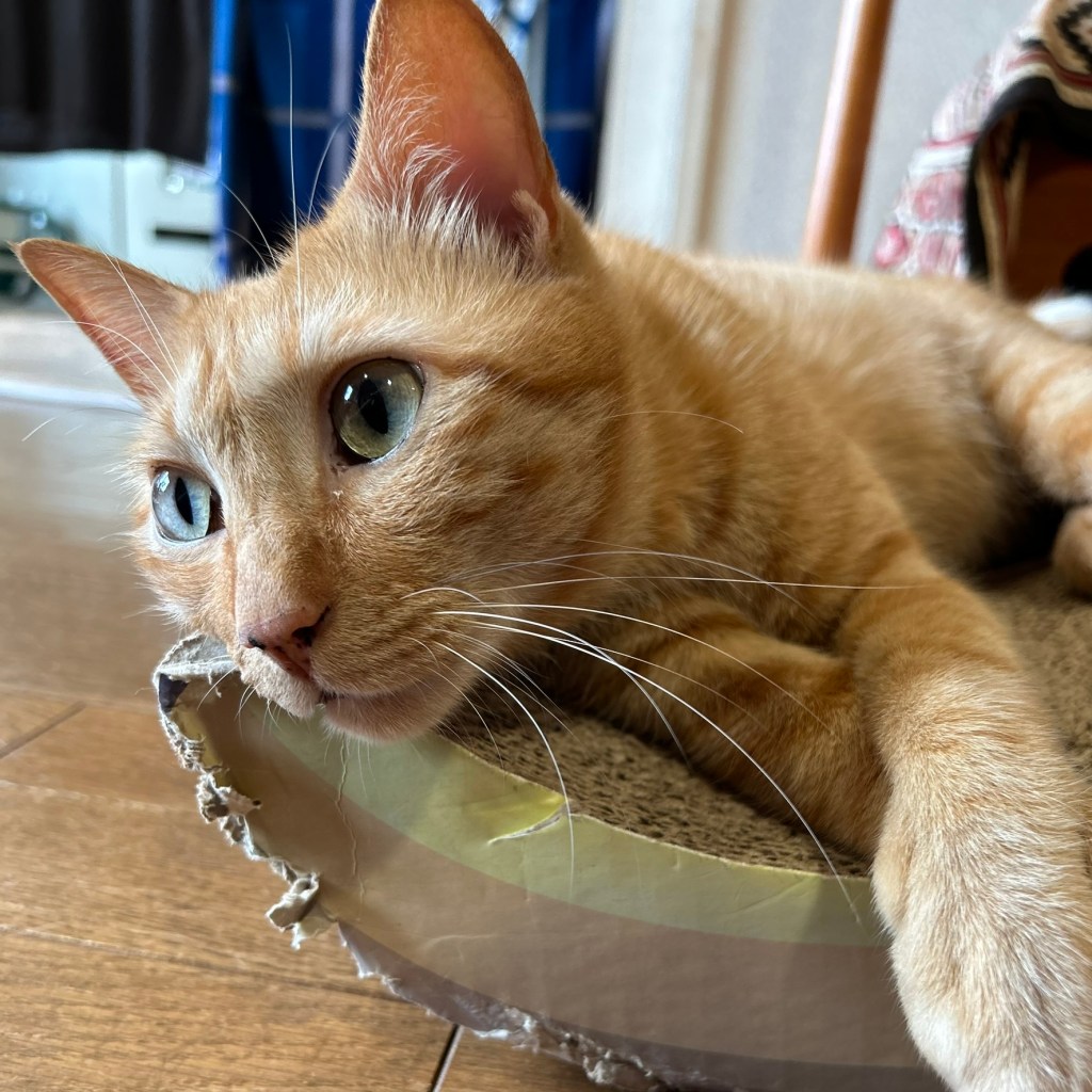 逃げた先に爪研ぎがあれば、そこでちょっと気分転換しています。