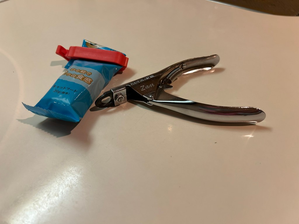その時の必須アイテムは、爪切りとおやつです。
