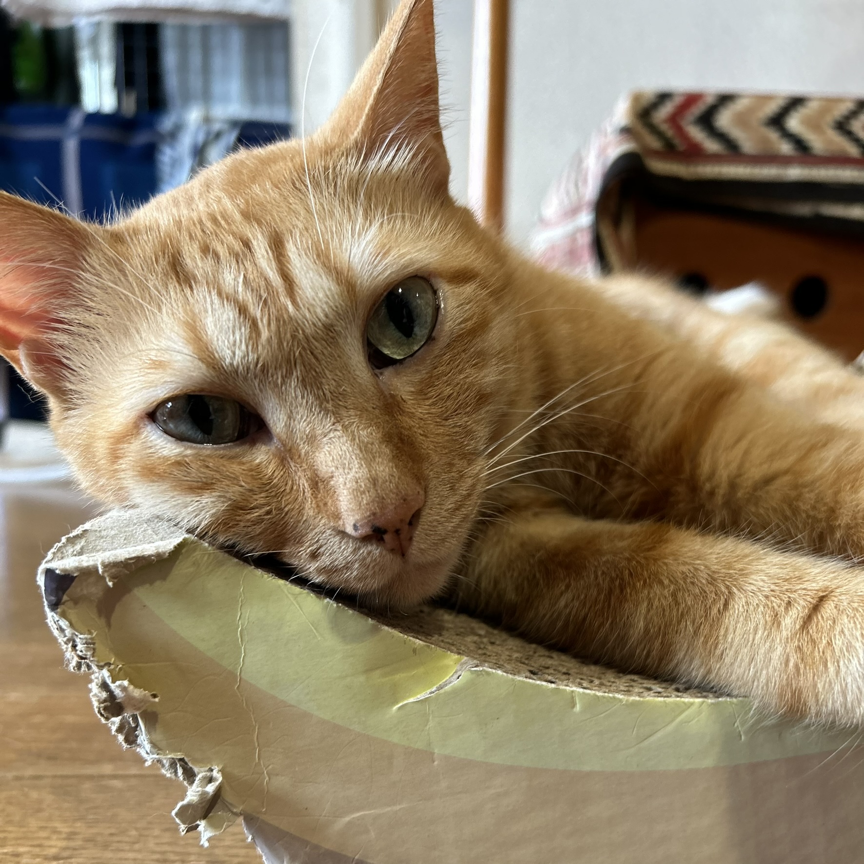 逃げた先に爪研ぎがあれば、そこでちょっと気分転換しています。
