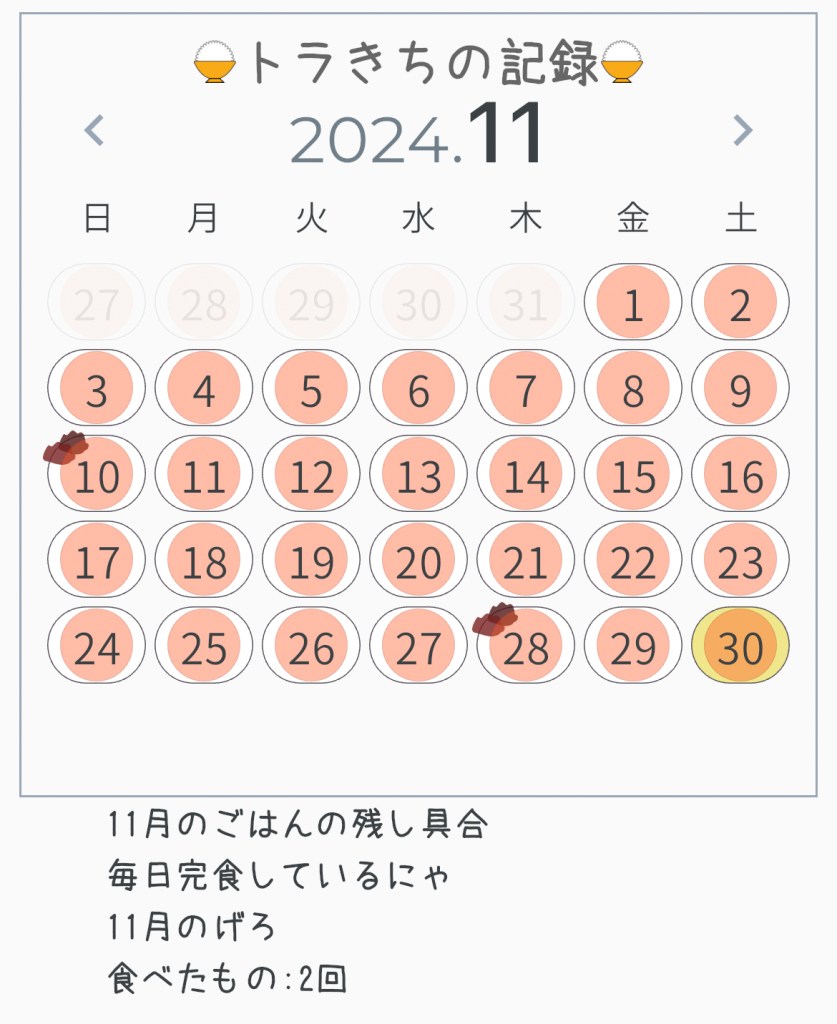 2024年11月のうんこ状況は、これまでにない好成績を飾りました!