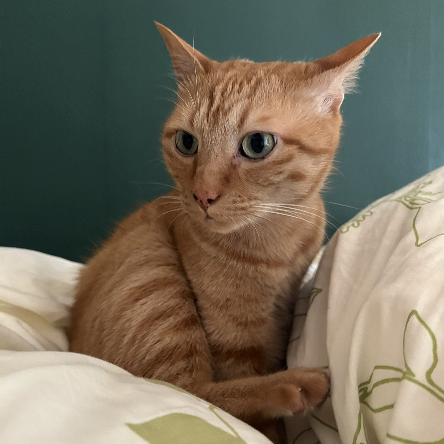 いつもこの時間帯は、トラきちは暖房近くのヨギボーの上でリラックスしているのがお決まりですが、今日は違う場所でのんびりしていました。