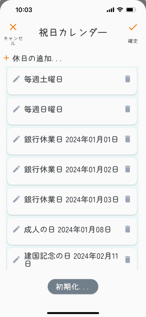 独自の休日を追加したり、不要な休日を削除する事も可能ですが、自動更新の際に初期化されるので注意が必要です。