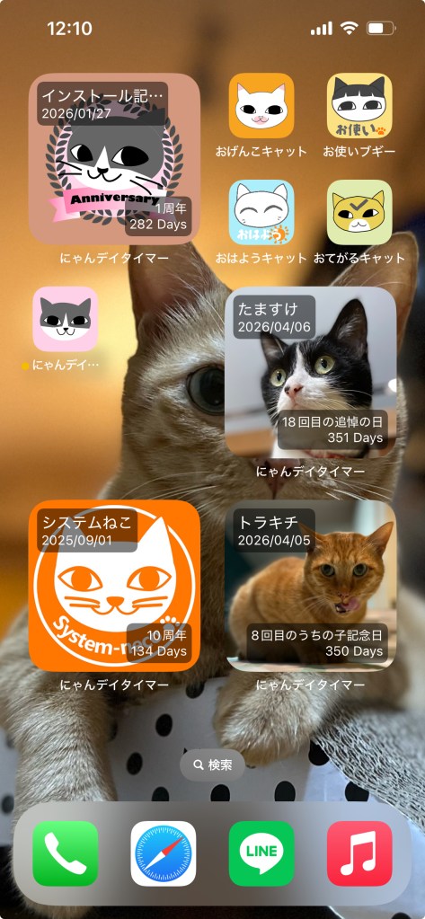 日本語名は、にゃんデイタイマーですが、英語名はTimewiseCatです。アプリ起動時のスプラッシュ画面のアプリ名も日本語とEnglishで異なります。