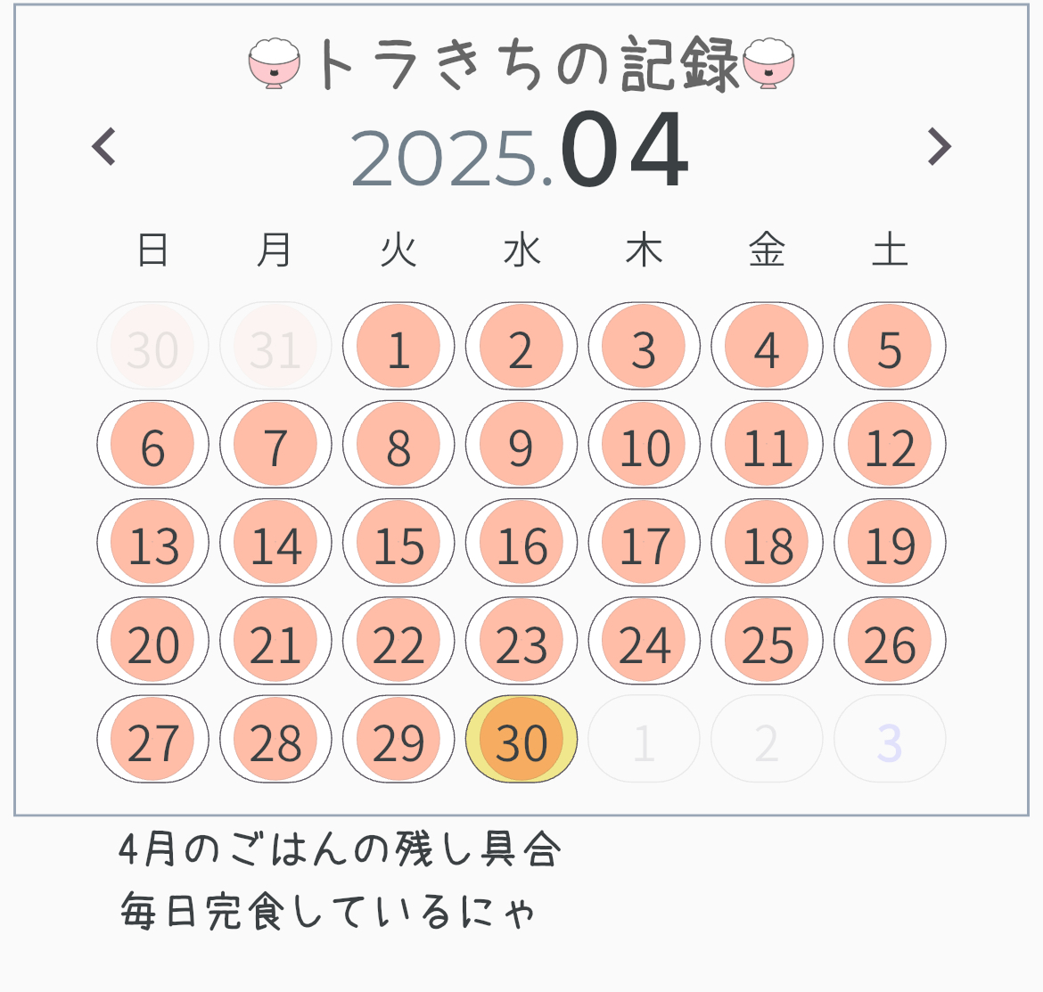 【おげんこキャット ごはんカレンダー】と完食