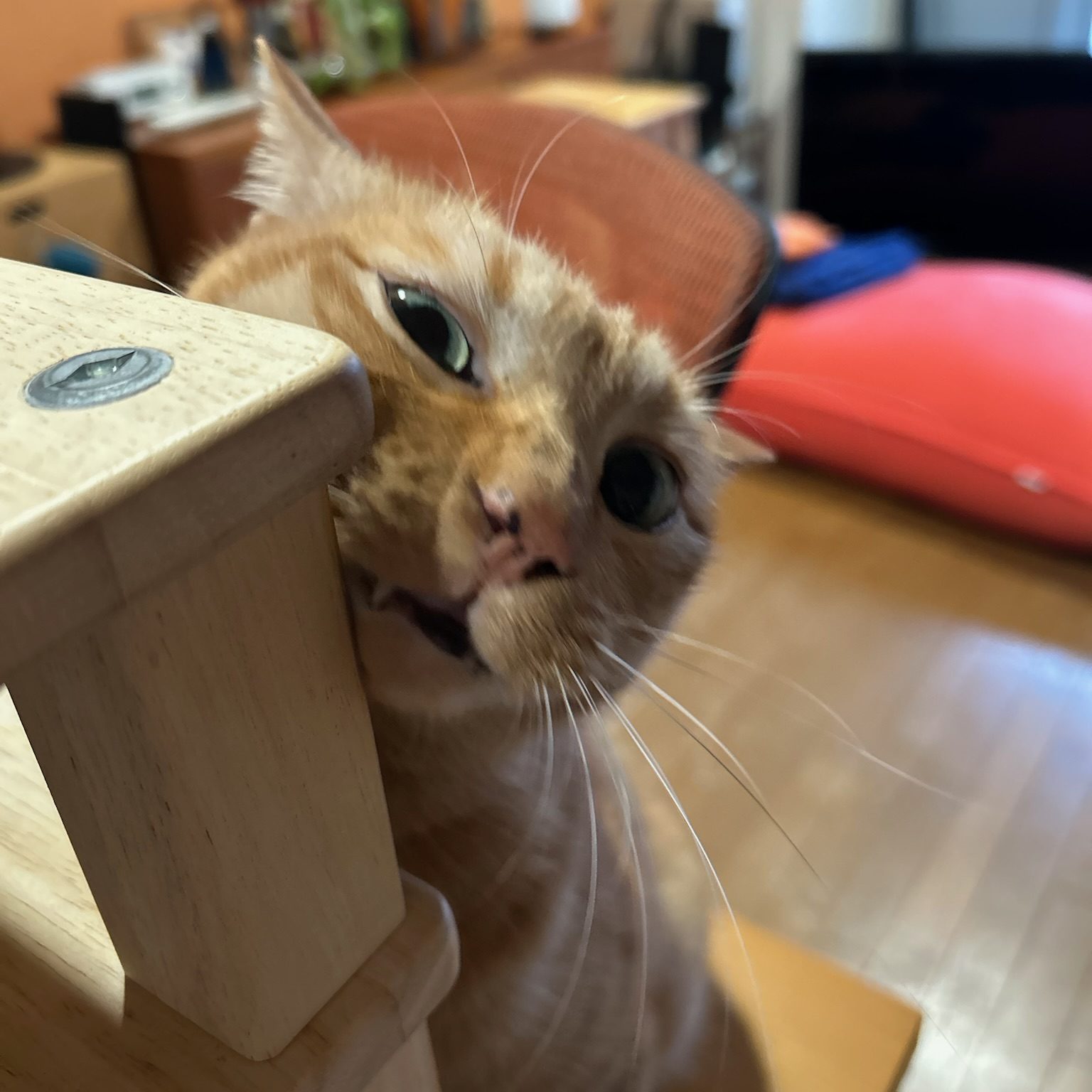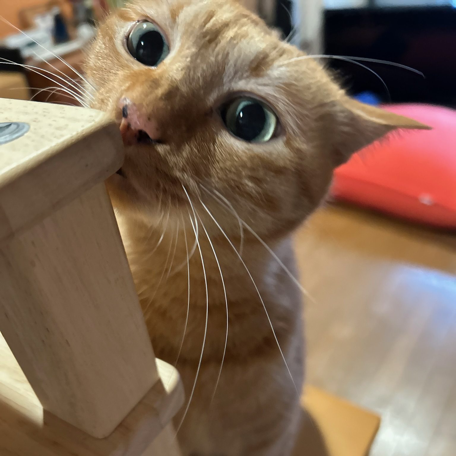 ひげ袋を特に角のあるところにつけて、スリスリに夢中になっていることもよくあります。たまーのたまに人間に対してもスリスリしてくれるとかわいくてすごくうれしい。