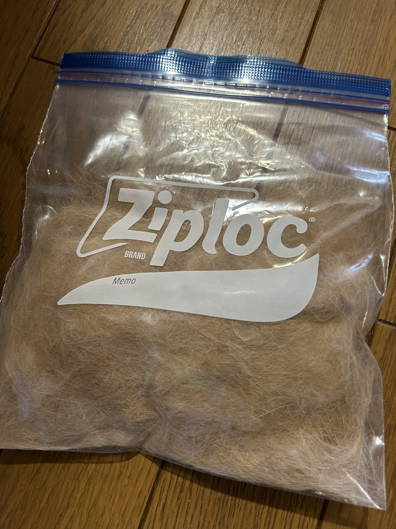 4月5月の換毛期を経て、夏日の続く6月の今、ブラッシングで出た抜け毛はずいぶんとたまっていきました。今年からはきれいな毛だけジップロックに入れて保管しています。