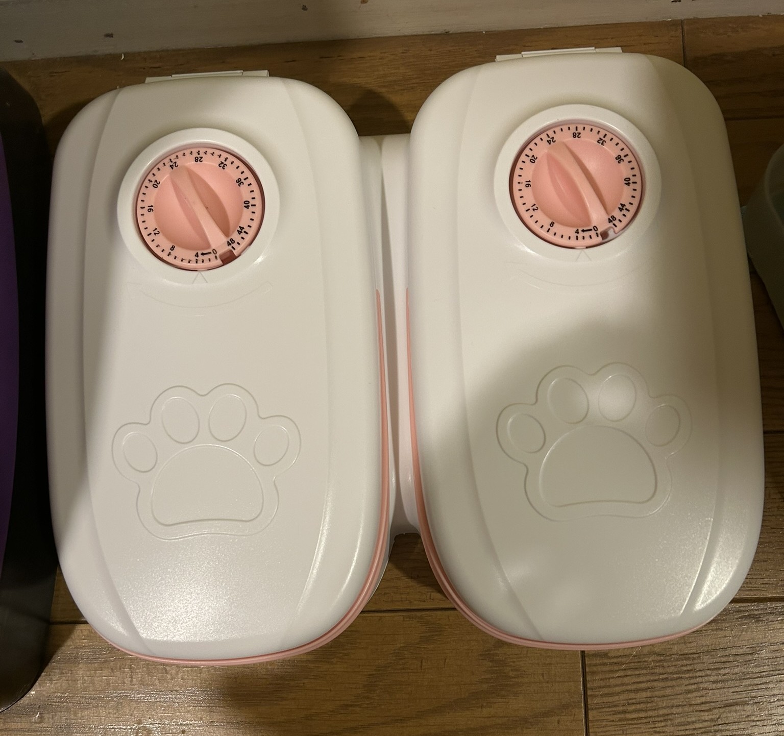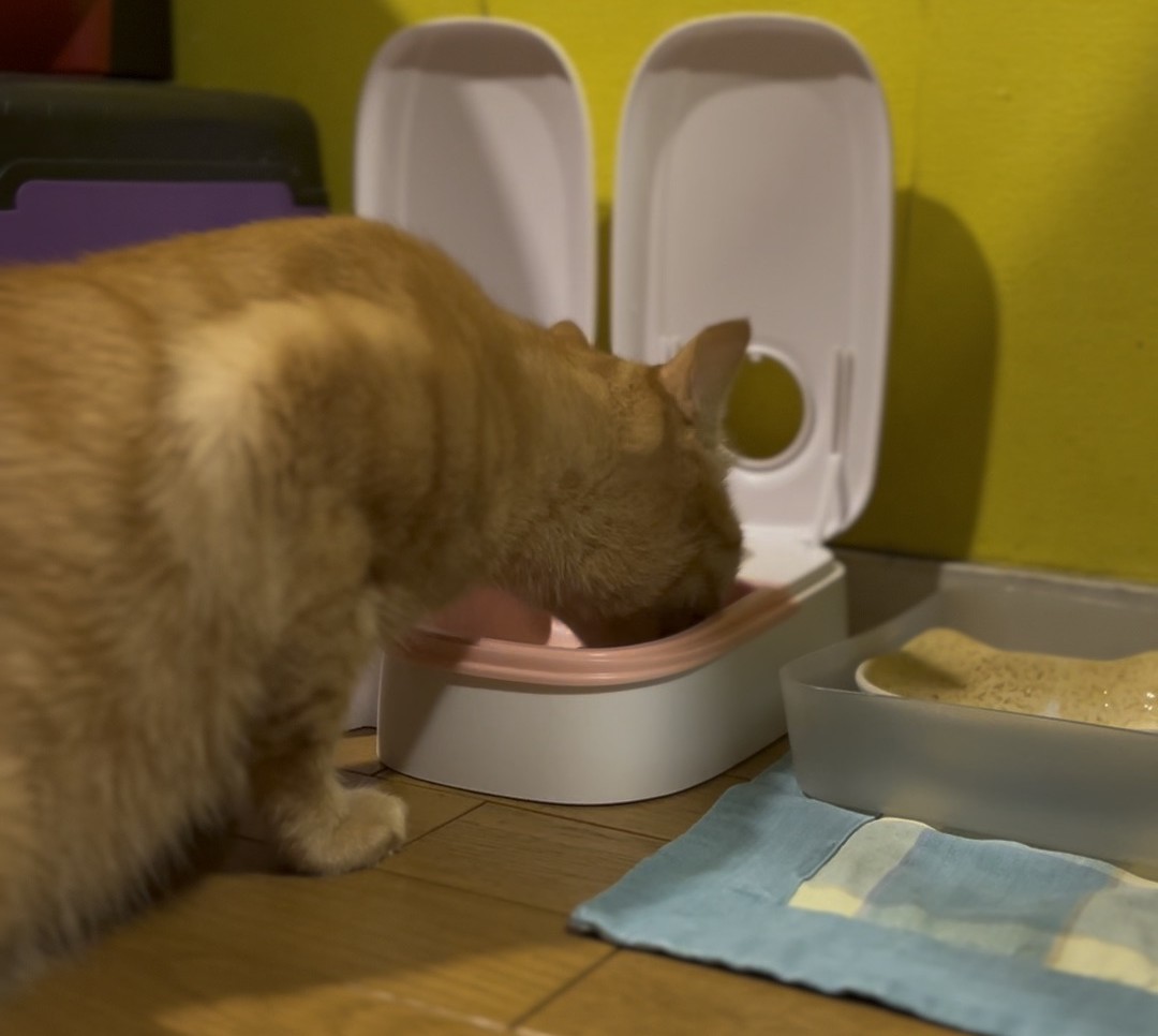 『自動給餌器』ってやつなんだけど、最初は、こいつが何者か全然わからなくて、ちょっと警戒してたんだ。でも、スキマからカリカリのいいニオイがするんだけど絶対開かないし。気になってしょうがなかったよ。