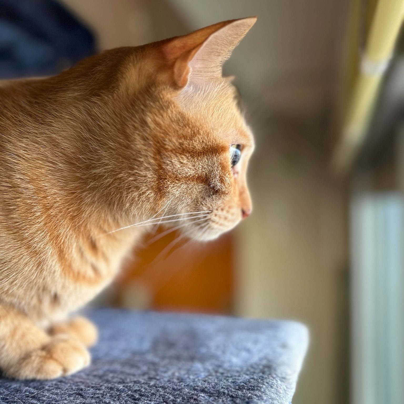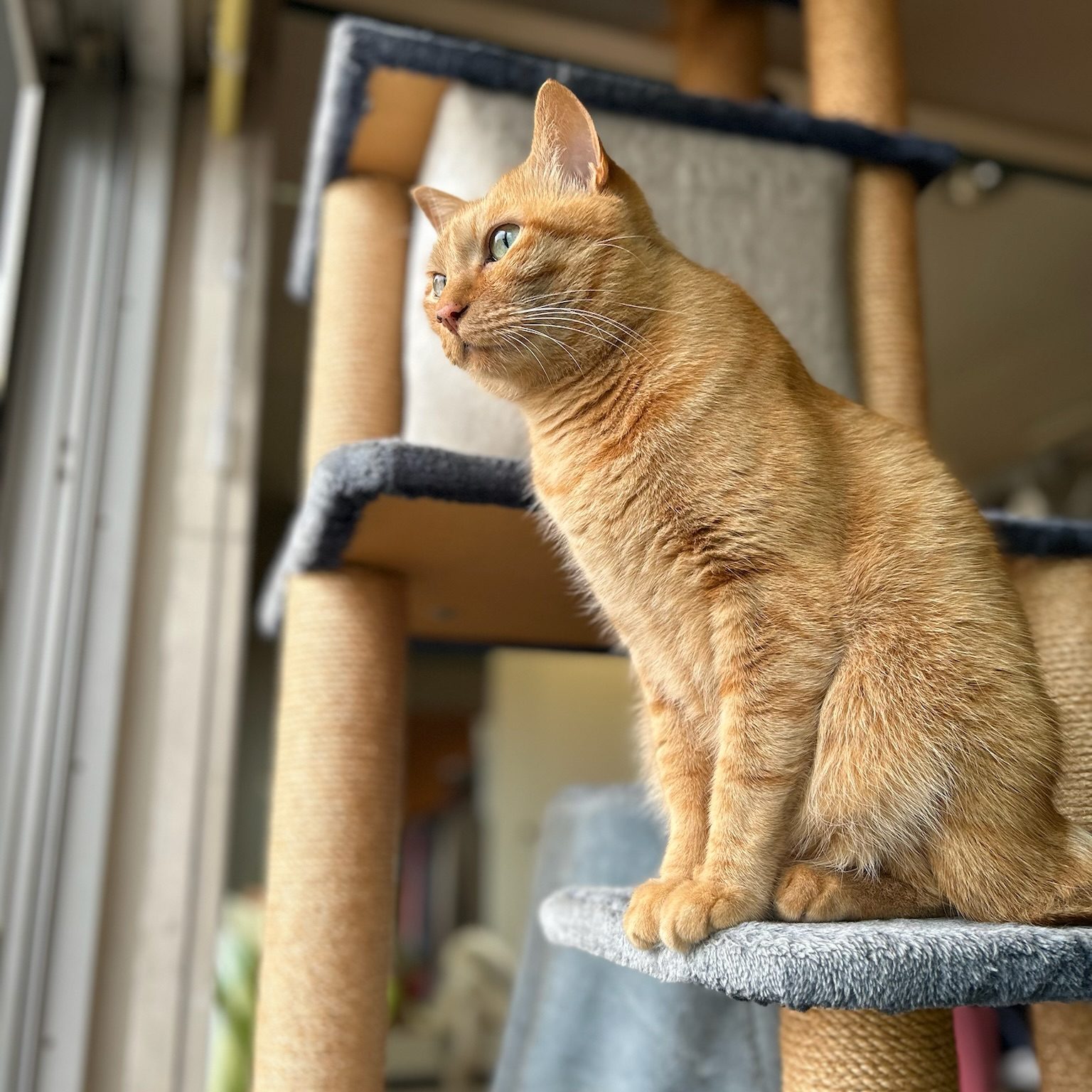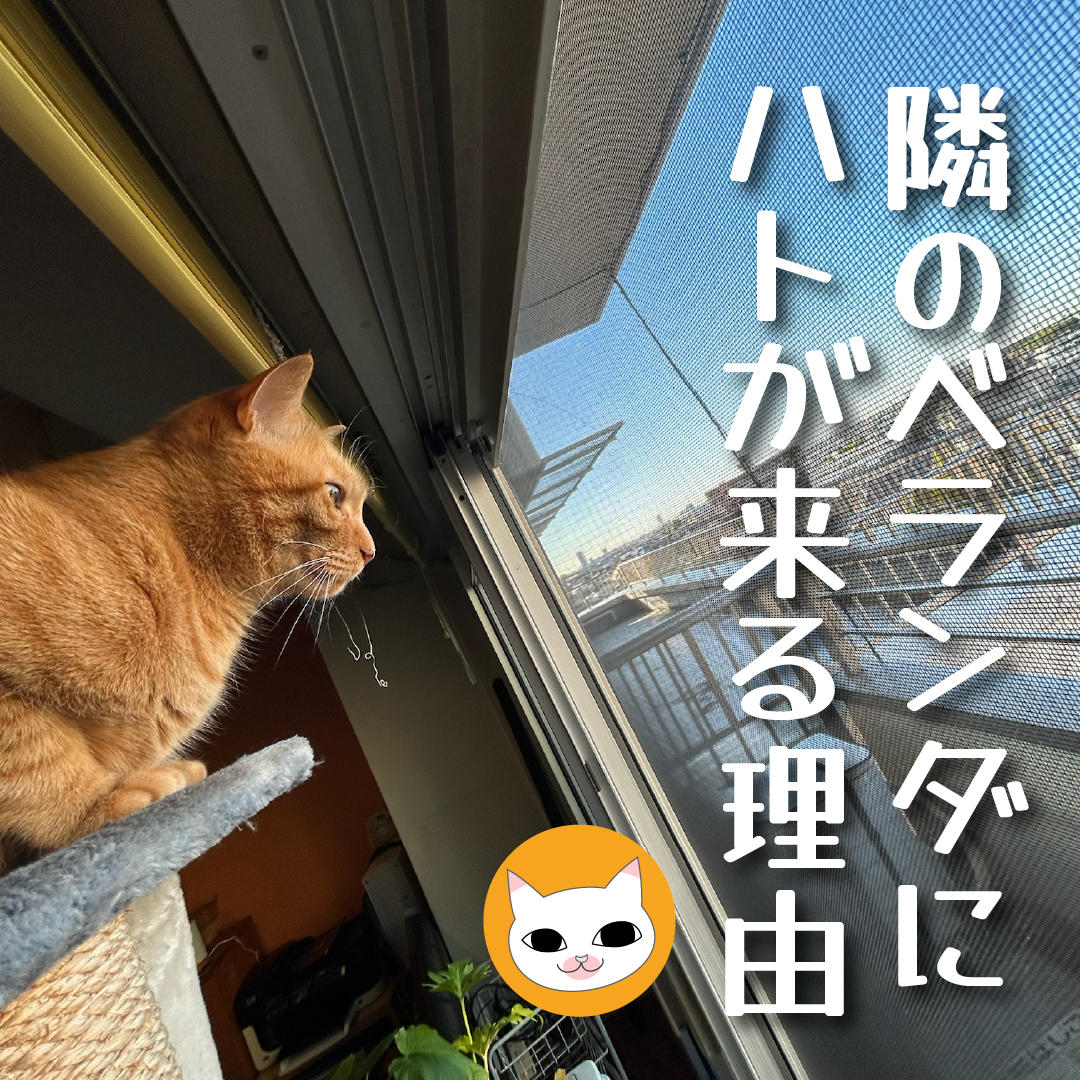 このベランダの角にはハトさんだけじゃなくて、時々カラスさんもやってくるよ。カラスさんは真っ黒でちょっと怖いから、ボクはそうっと見ているけど、ボクのキャットタワーからは丸見えなんだ。