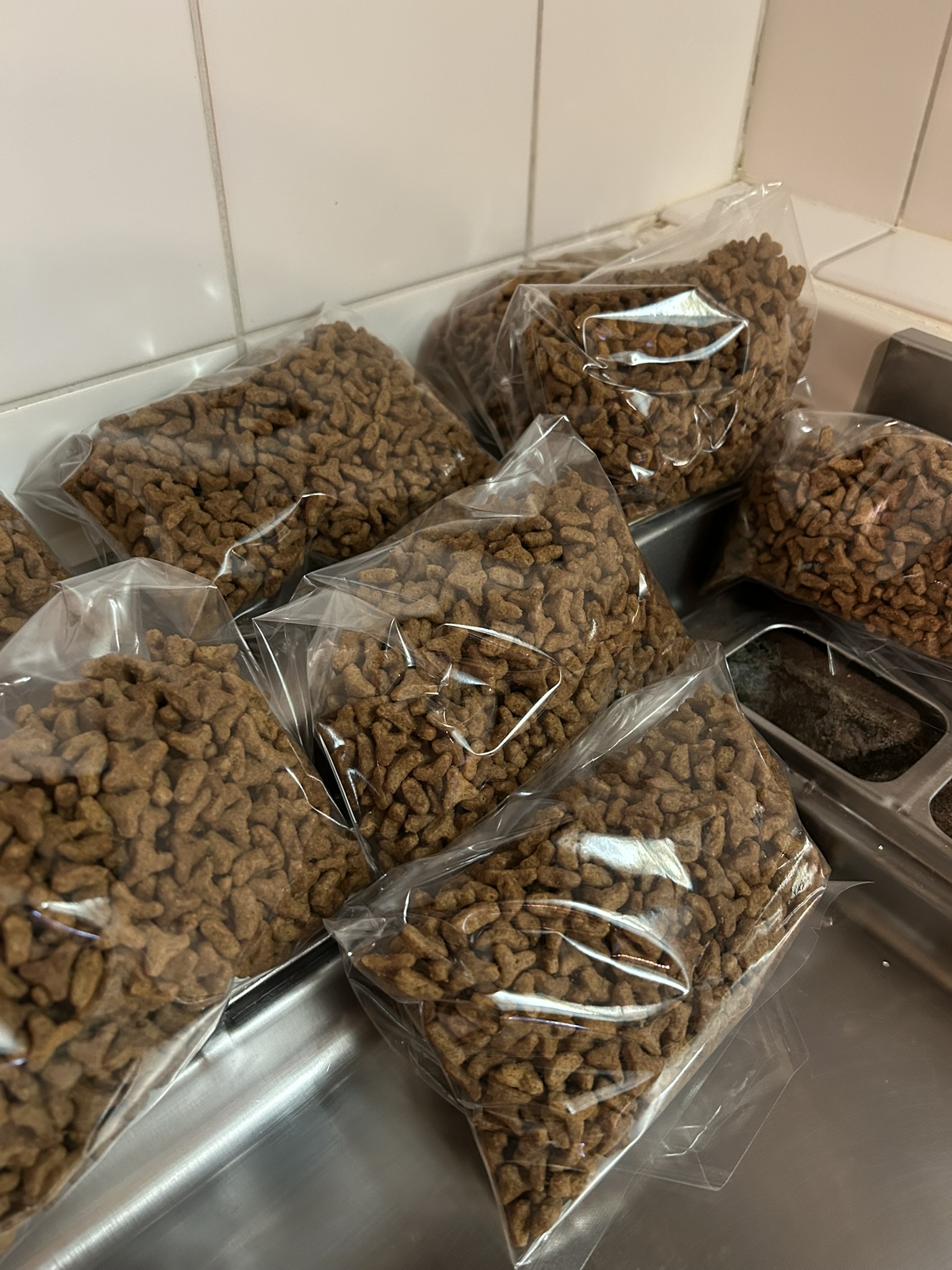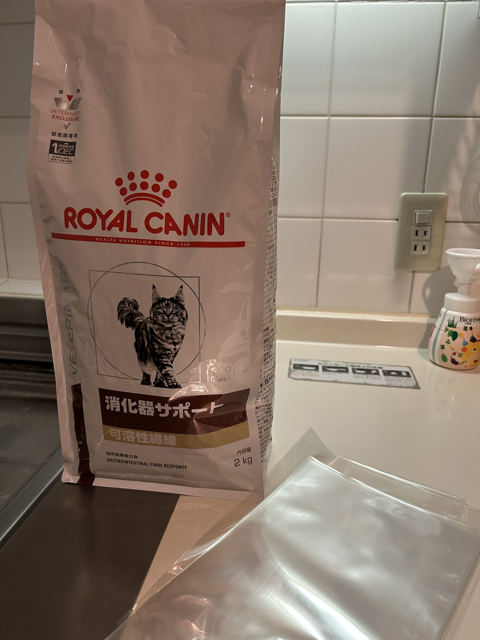 ピュリナワンは、小分けの袋のを買っているのですが、ロイヤルカナンは小分けになっておらず、2kgの袋を半年くらいかけて食べるので、湿気や酸化を防止するために自宅で小分けにして真空パックにしています。