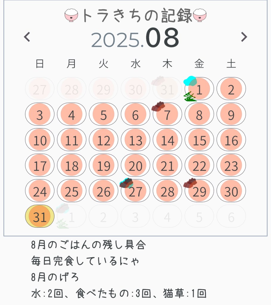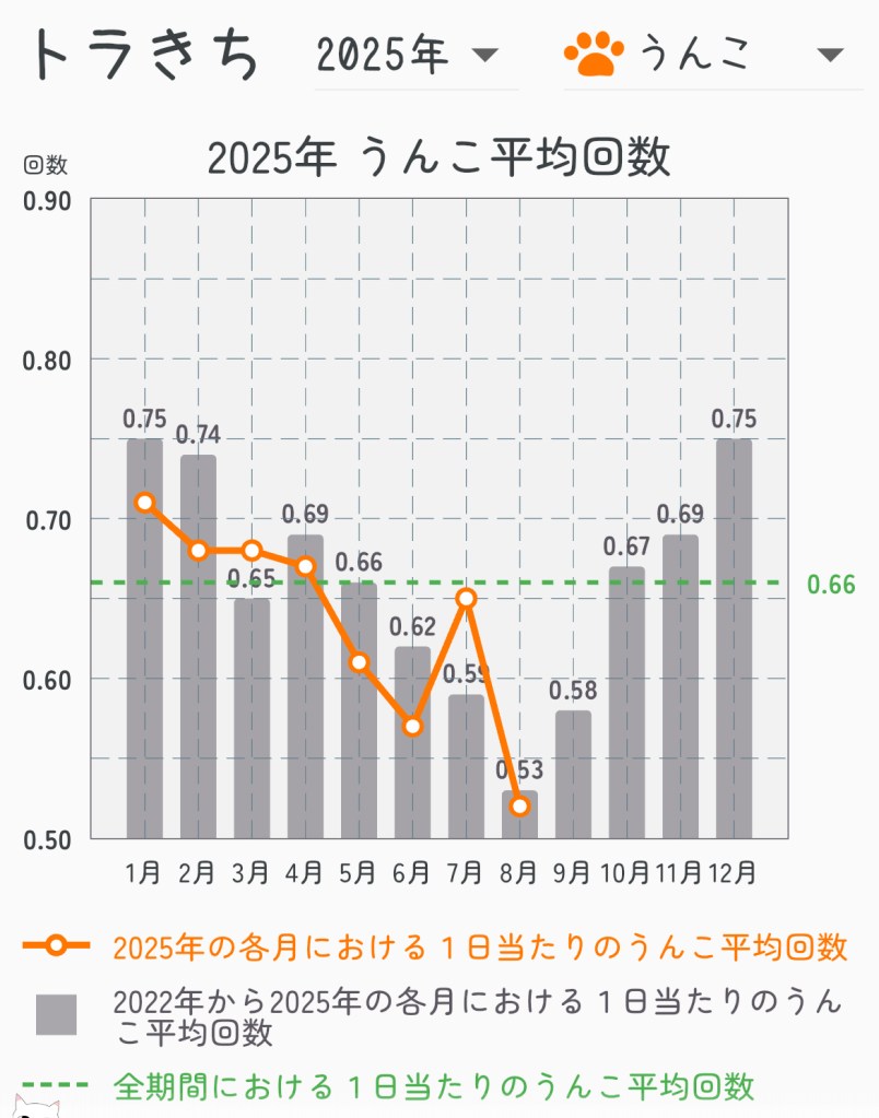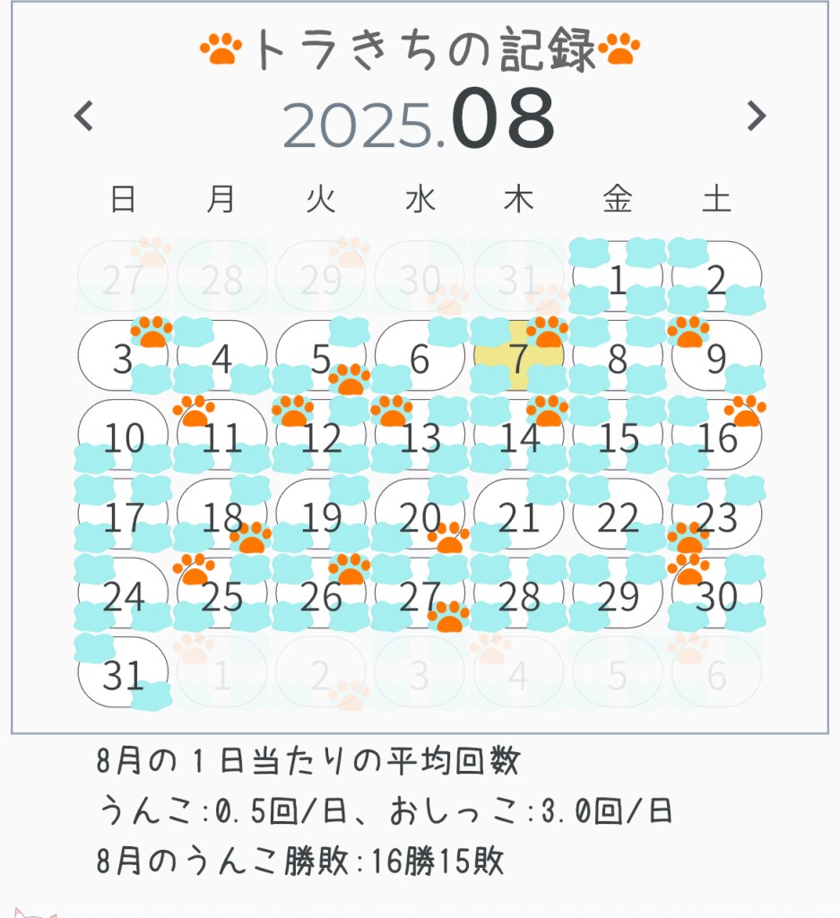 - トラきちの8月のうんこ・おしっこ回数