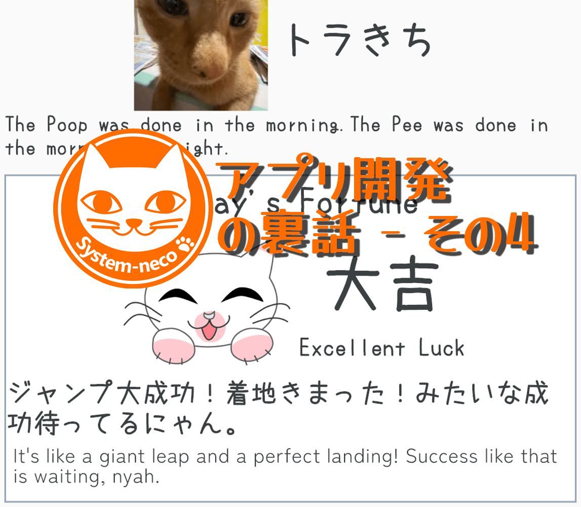 おはようキャットも多言語対応していません。そもそも現状では、おげんこキャットと同様にねこみくじの音声を英語対応出来ません。おげんこキャットと同じ様に、「音声は日本語のままで、英語訳を表示する。」と言う方法で対応可能だとは思います。