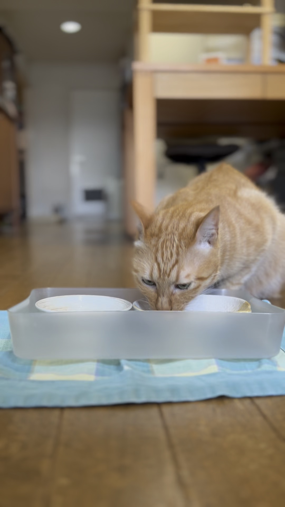 しょうがないからトイレに行って、おしっこした。もちろん、砂を派手にカキカキしておしっこしたことをお知らせしたよ。うちはね、おしっこするとおやつのシーバを2粒もらえるんだ。自分のおやつは自分で稼ぐシステムさ。パパが起きた。お掃除してシーバを2粒くれた。じゃあ、朝ごはんかなーって思ったんだけど、また寝ちゃった!