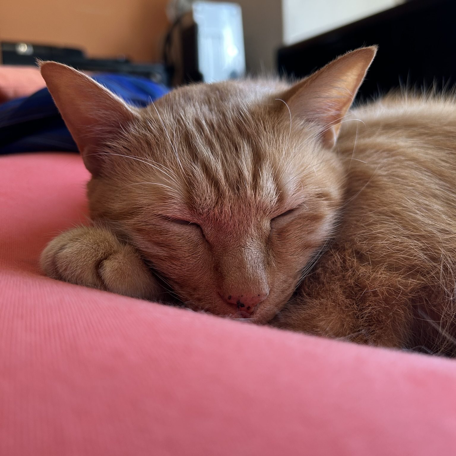 ごはんを食べた後は、ボクは部屋の中をよーく点検した後、ヨギボーの上でスヤスヤ眠っちゃった。ママたちも朝ごはんの後、寝れるといいね。