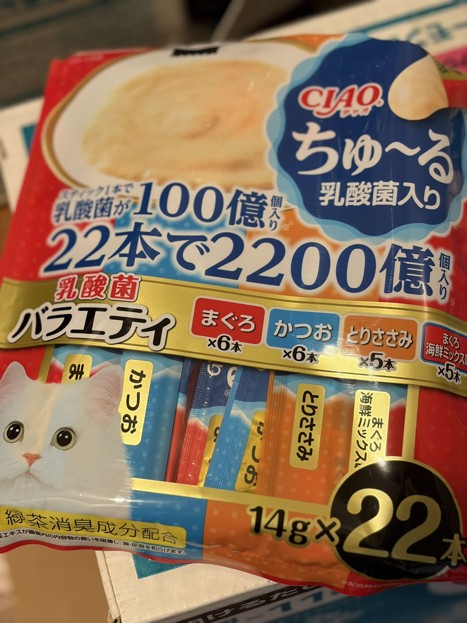 多くの食品が値上がりしたようにトラきちの大好きなちゅーるも値上がりしました。今までは、「すごい乳酸菌」を購入していたのですが、それよりは乳酸菌の少ない「乳酸菌入り」のちゅーるとなりました。